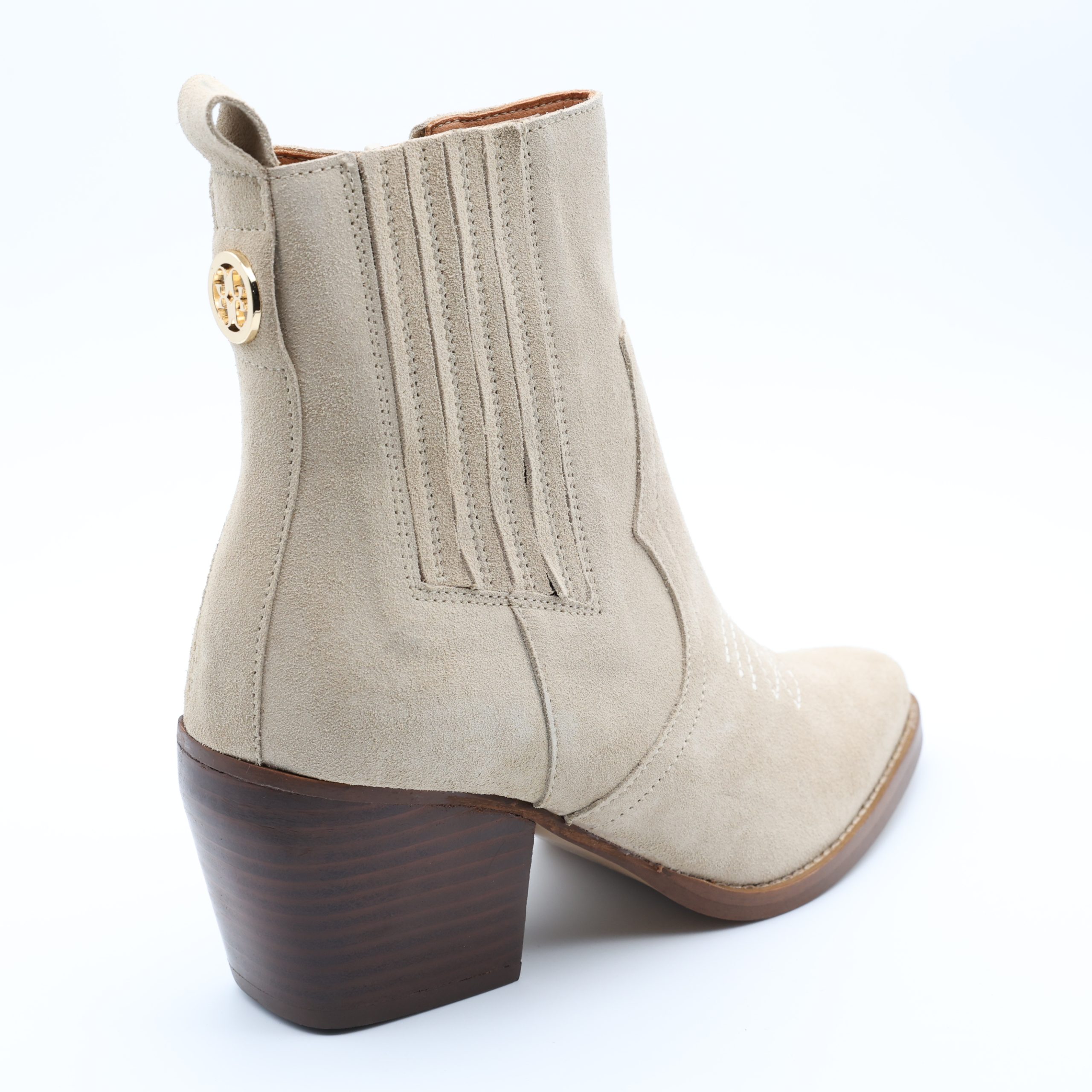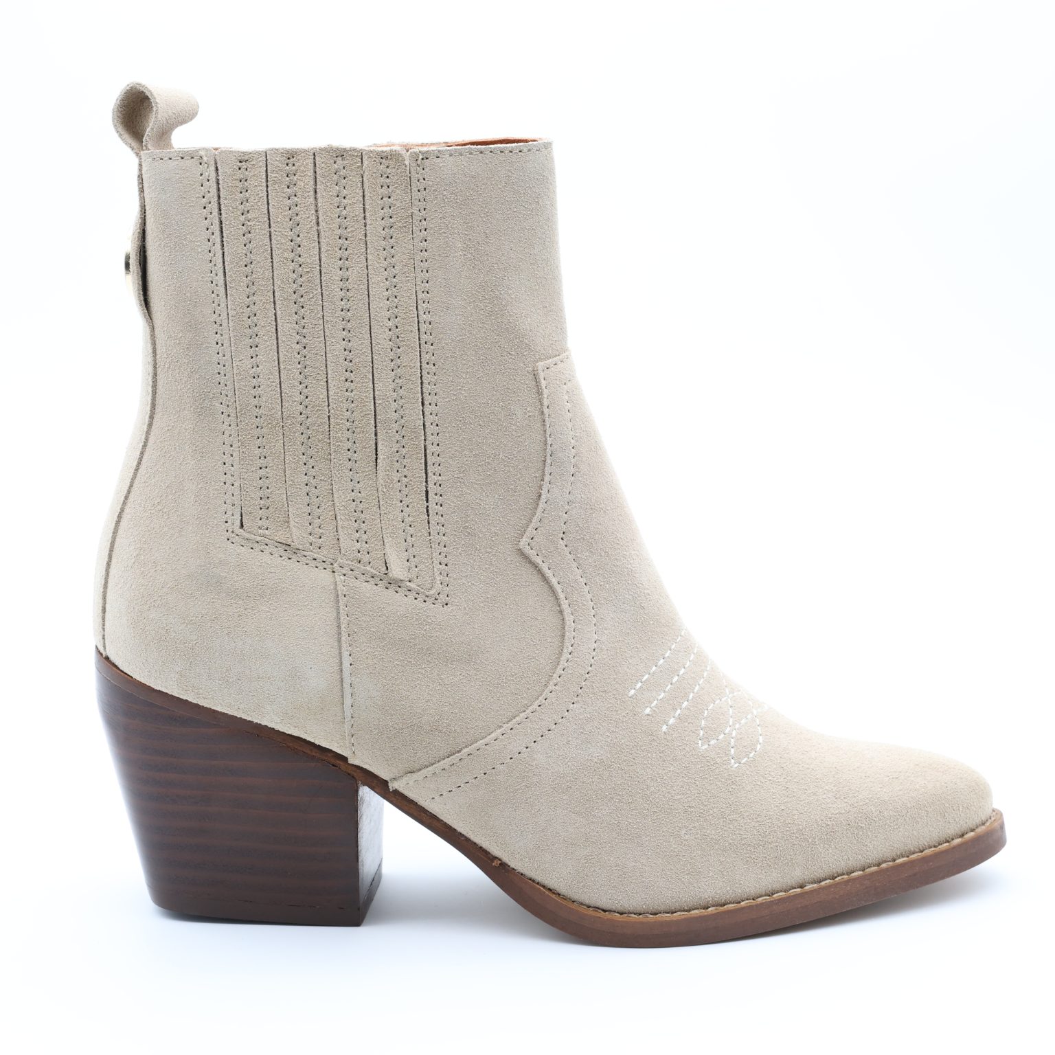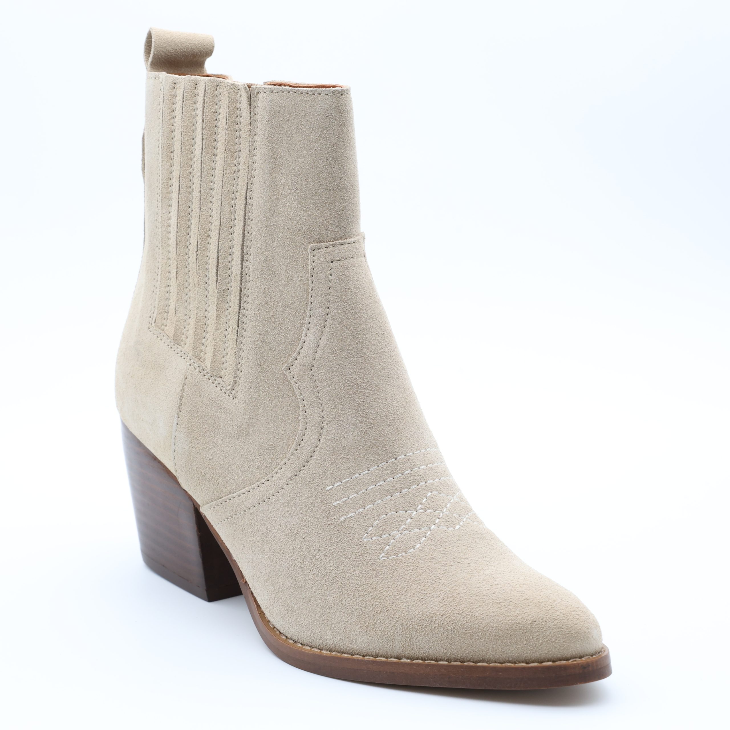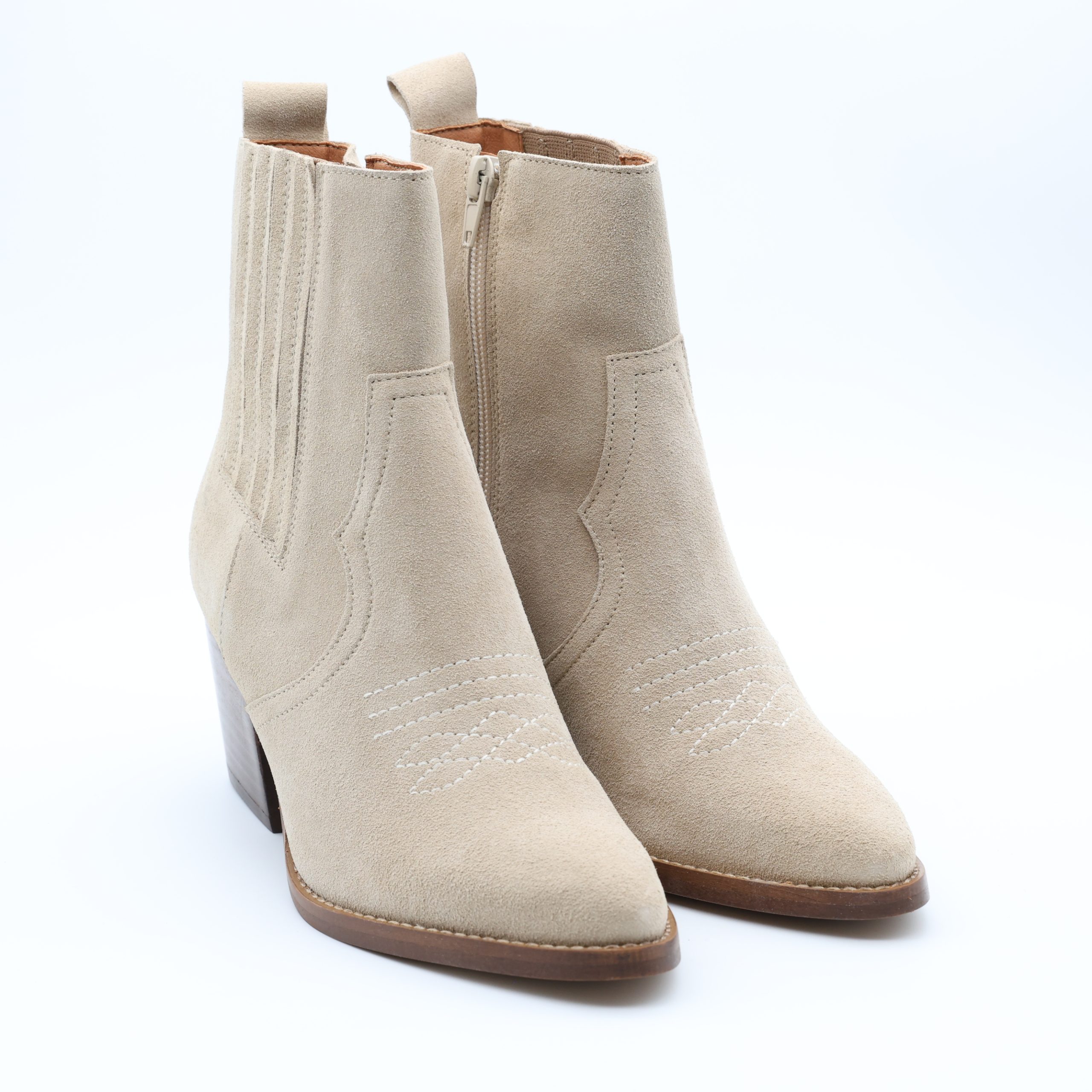 Esta bota Gusi combina o charme do estilo western com a sofisticação contemporânea. O design em camurça bege, aliado ao salto médio em madeira e aos detalhes pespontados, cria um visual elegante e versátil. Ideal para complementar looks casuais ou mais elaborados, oferece conforto e personalidade em cada passo.