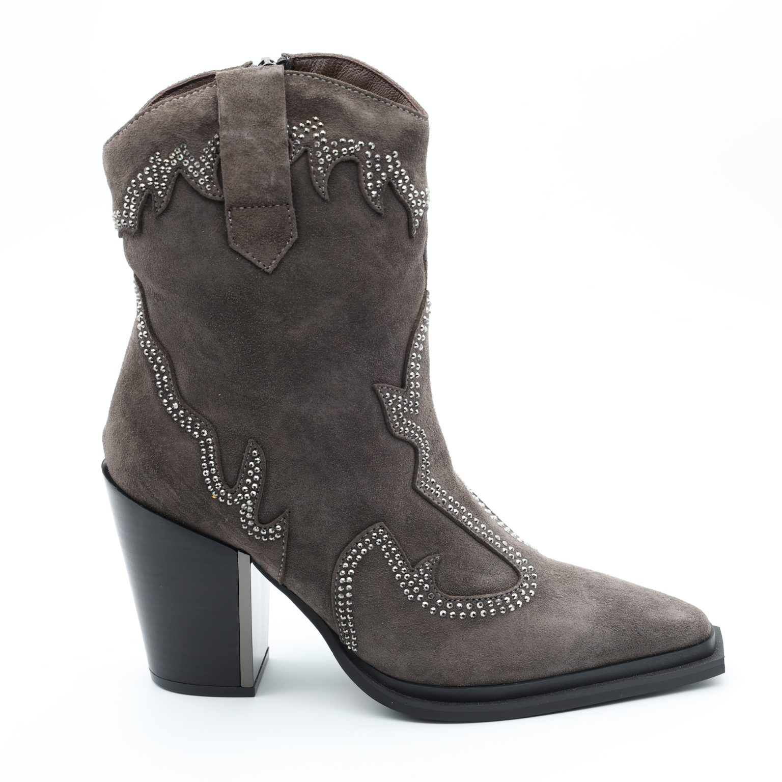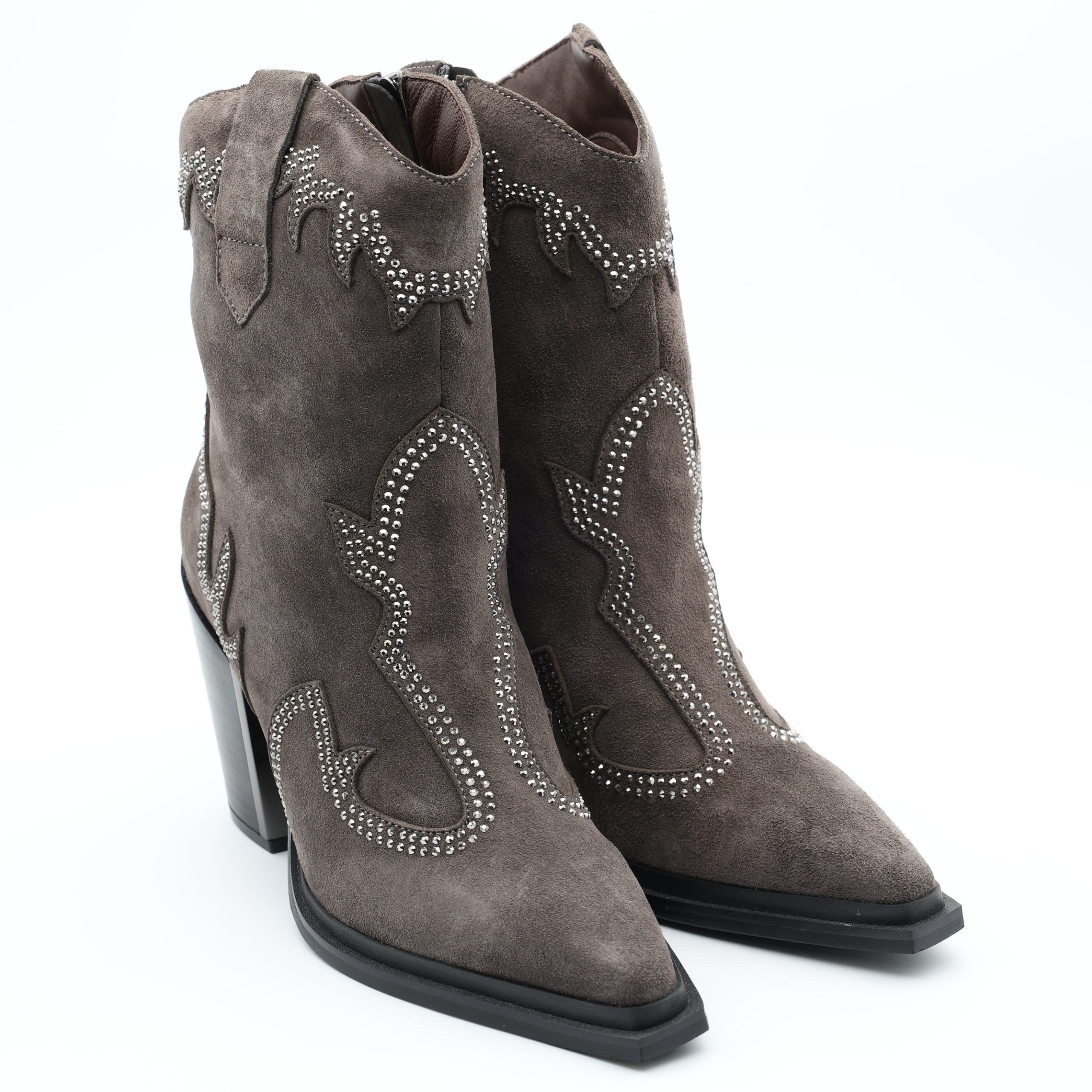 A Bota Alma en Pena I240562 combina elegância e ousadia num design marcante e cheio de personalidade. Confecionada em camurça macia, apresenta aplicações brilhantes e detalhes femininos que refletem o ADN sofisticado da marca.