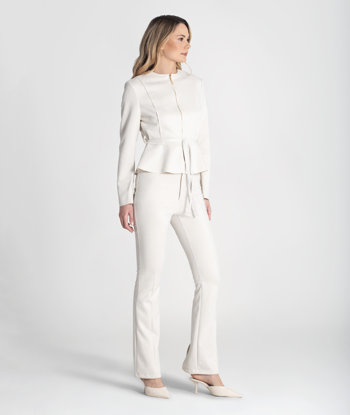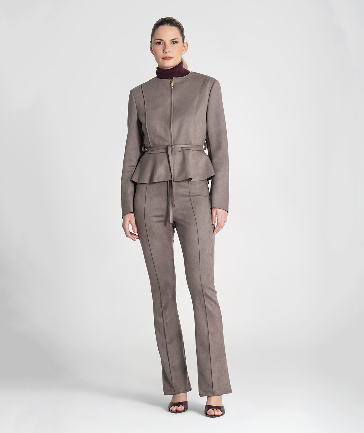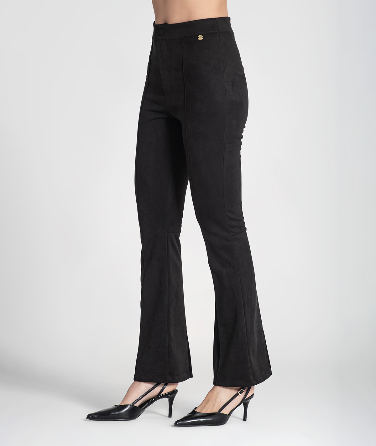 As Calças RUGA 6441 reinterpretam o clássico corte pantalona com um toque moderno e elegante. O seu corte flare alonga a silhueta, enquanto o tecido com elasticidade suave garante conforto e ajuste perfeito. O fecho frontal com botão e zip acrescenta um acabamento sofisticado — ideais para looks de trabalho, eventos ou coordenados mais casuais-chic.