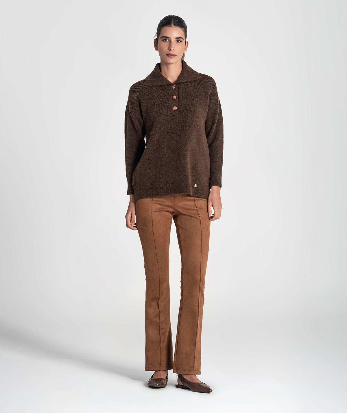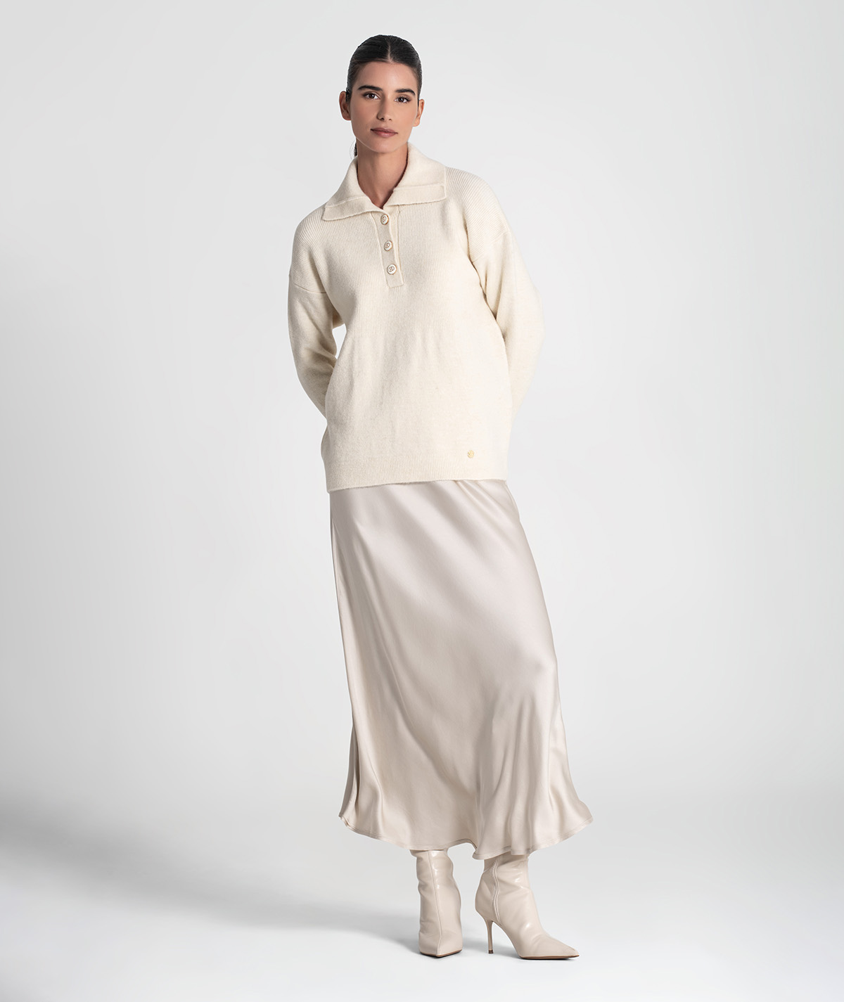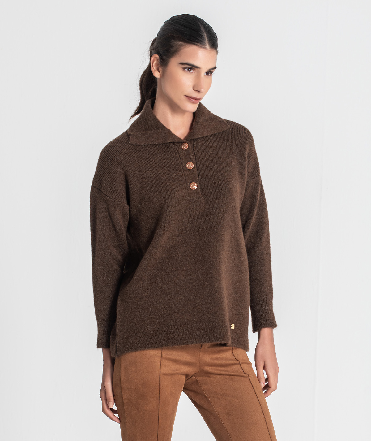 Clássica e versátil, esta camisola distingue-se pelos botões personalizados que acrescentam um toque de elegância e originalidade. Uma peça confortável e prática, ideal para conjugar com diferentes estilos — desde o casual ao mais sofisticado.