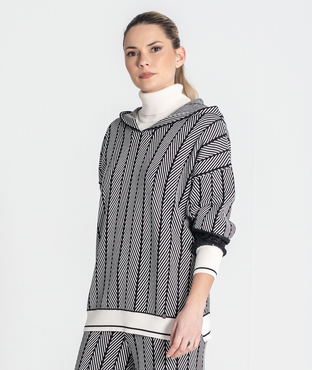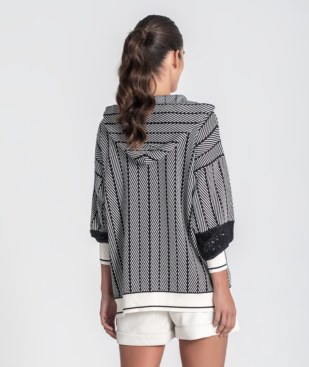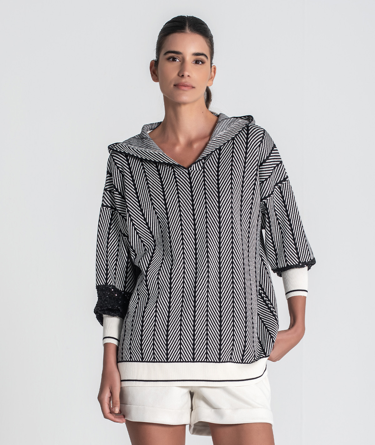 A Camisola RUGA 3477 é uma peça statement que combina conforto natural com brilho discreto. O corpo em malha jacquard alia textura e leveza, enquanto as mangas com lantejoulas trazem um toque sofisticado e moderno — perfeita para elevar looks casuais ou dar destaque a combinações mais elegantes.