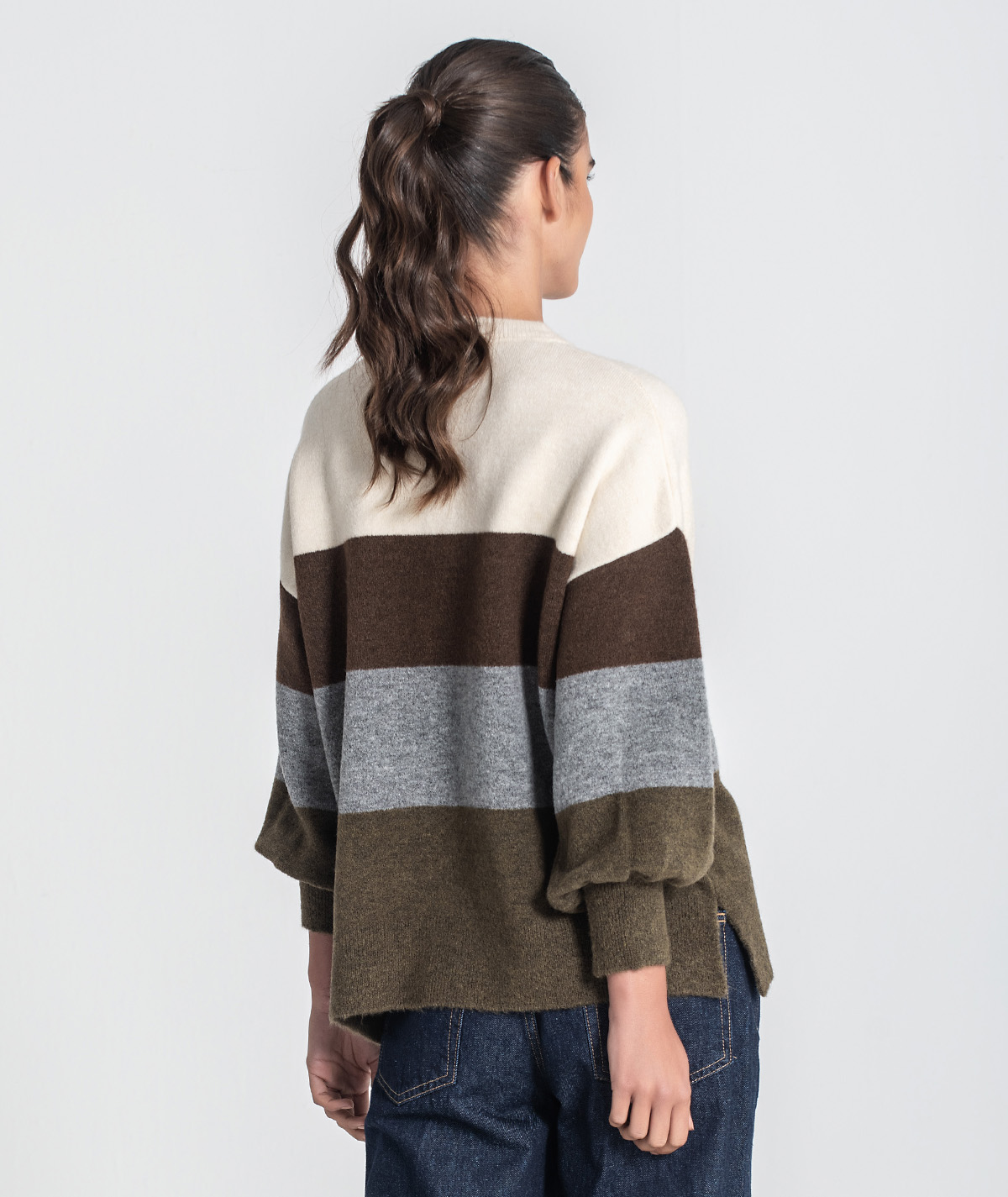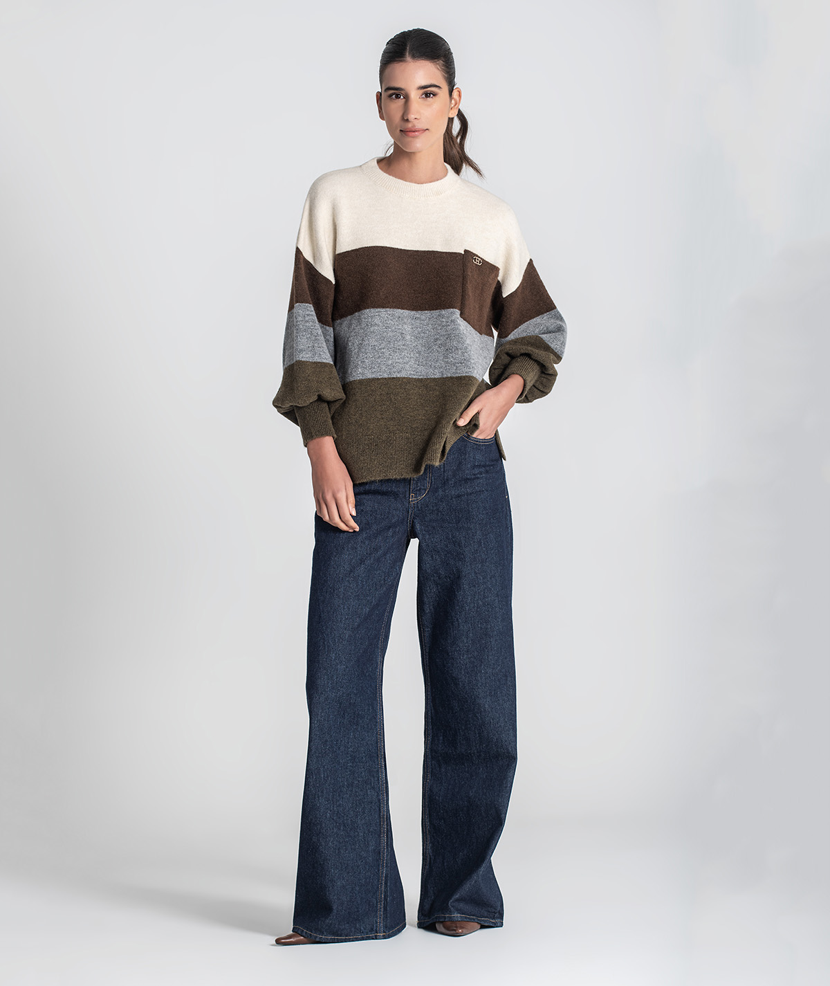 🧵 Design: padrão de riscas que dá movimento e leveza à peça