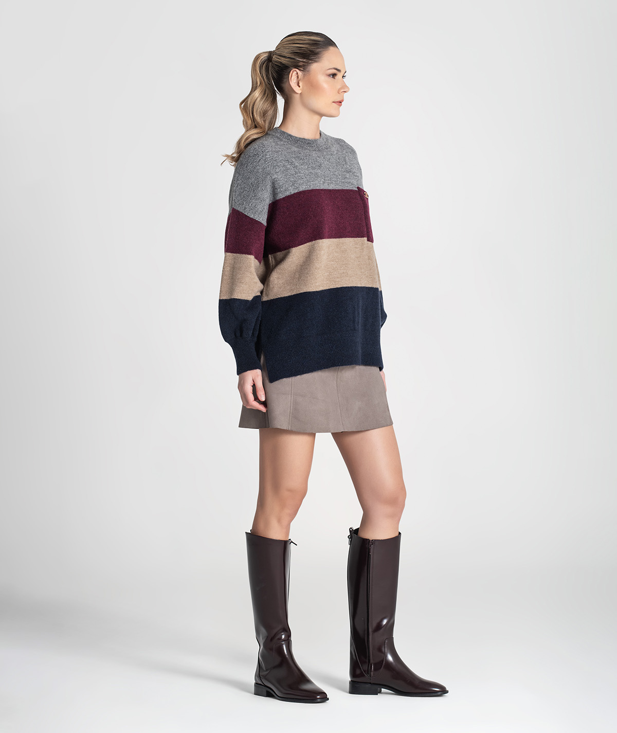 Confortável e cheia de estilo, esta camisola de riscas é perfeita para compor looks casuais com um toque distinto. O bolso frontal adiciona funcionalidade e charme, enquanto o detalhe de chapa “R” confere um acabamento moderno e exclusivo.