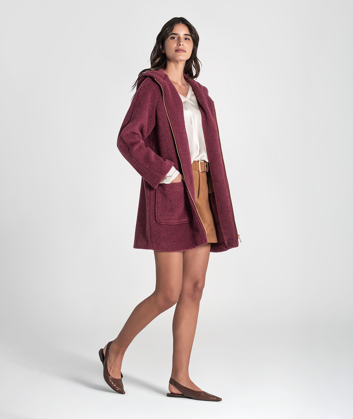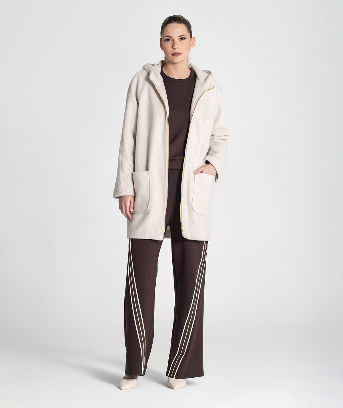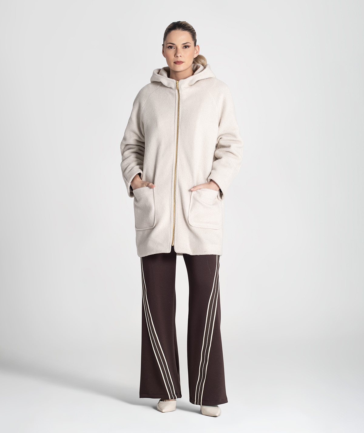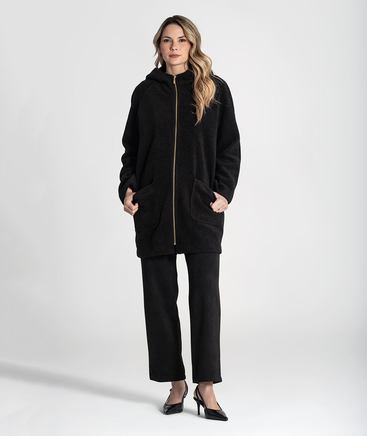 🧵 Design: oversize, com efeito ruga e bolsos frontais funcionais