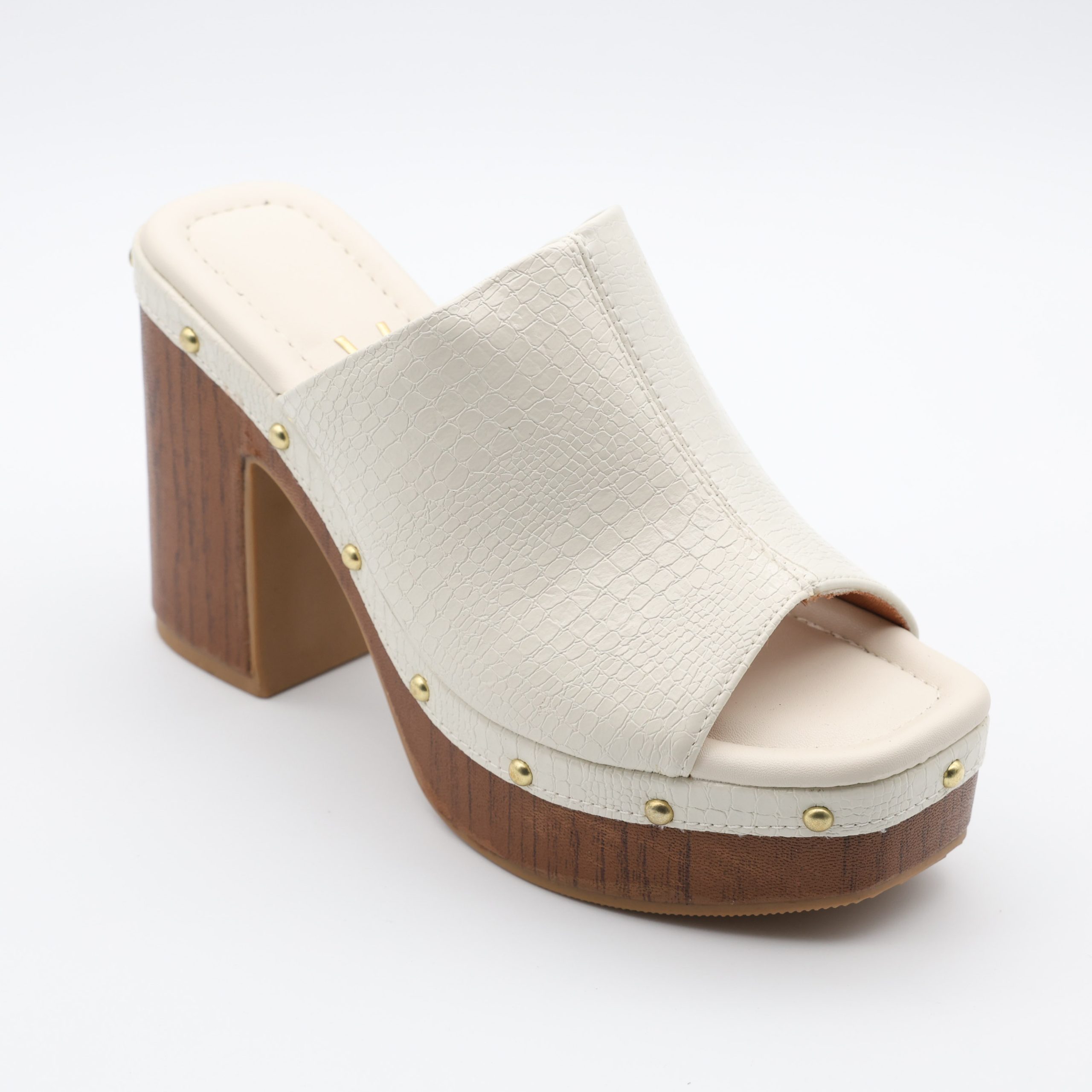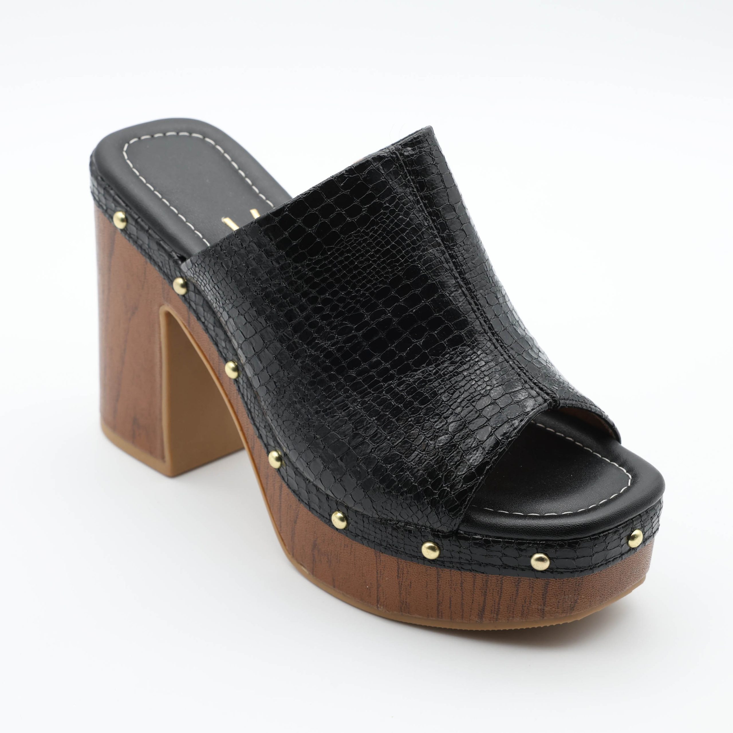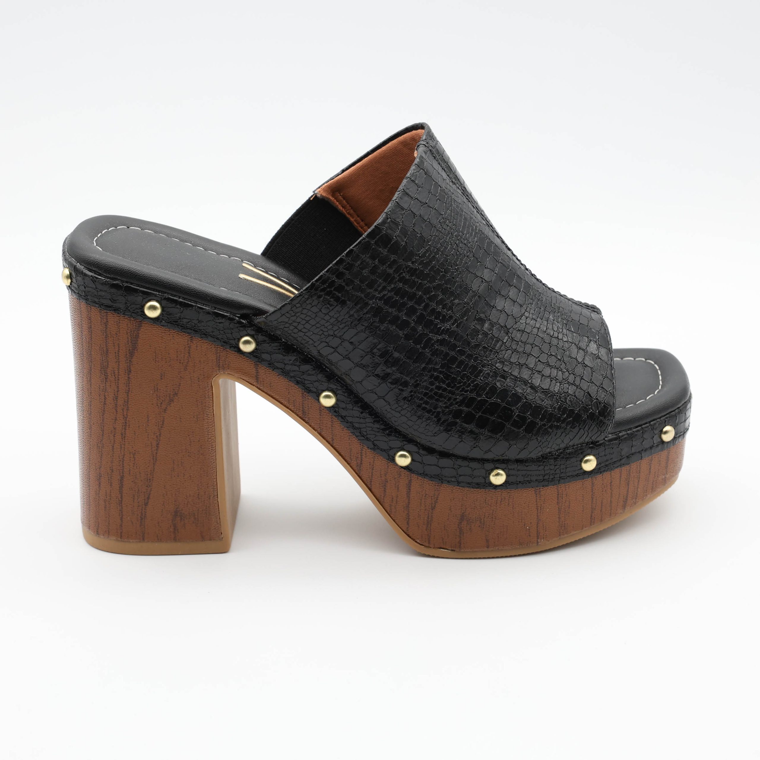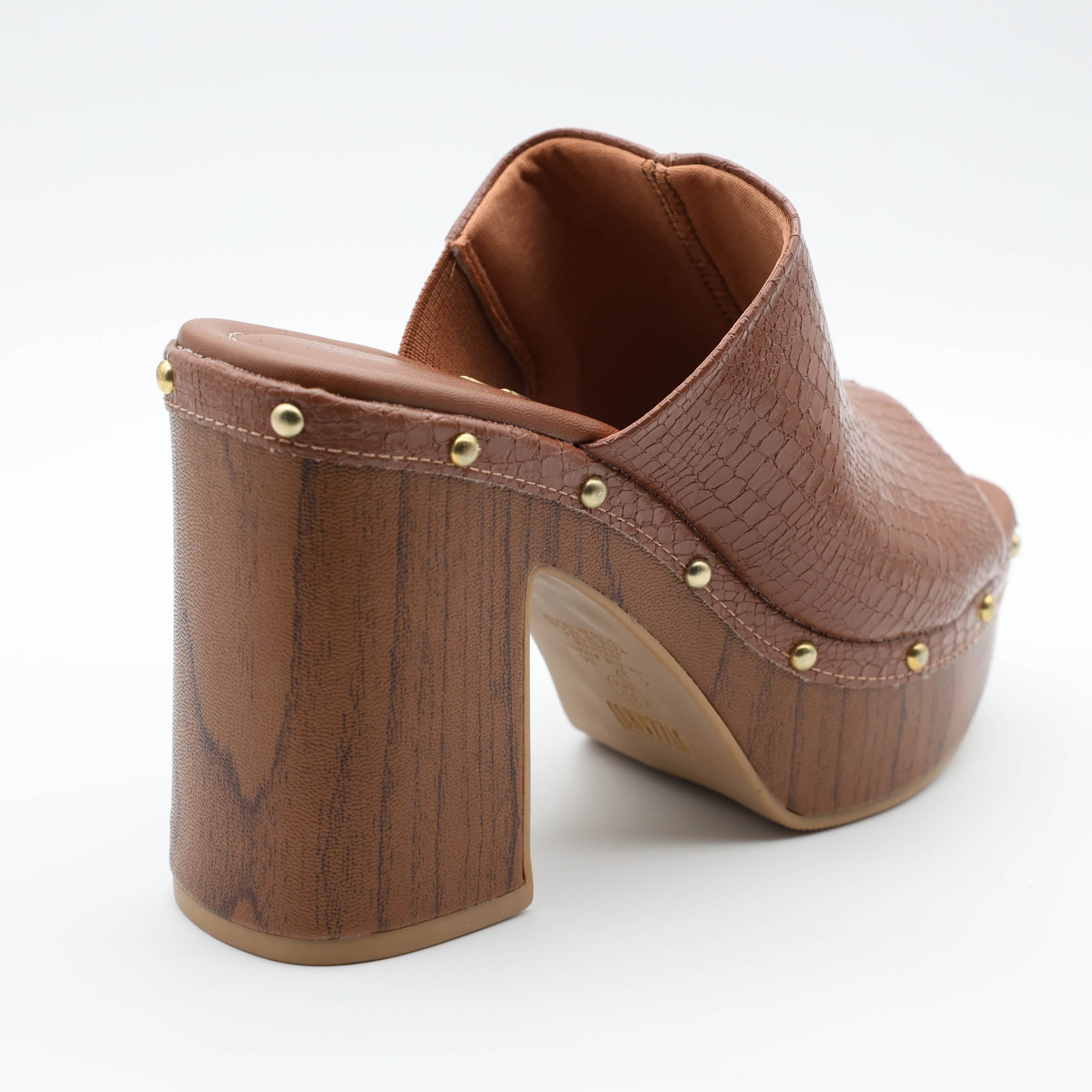 As chinelas 6541.205.30395 da Vizzano apresentam um design moderno com salto robusto. O contraste entre a gáspea lisa e a sola efeito madeira cria um visual distinto. Assim, são ideais para ocasiões especiais.