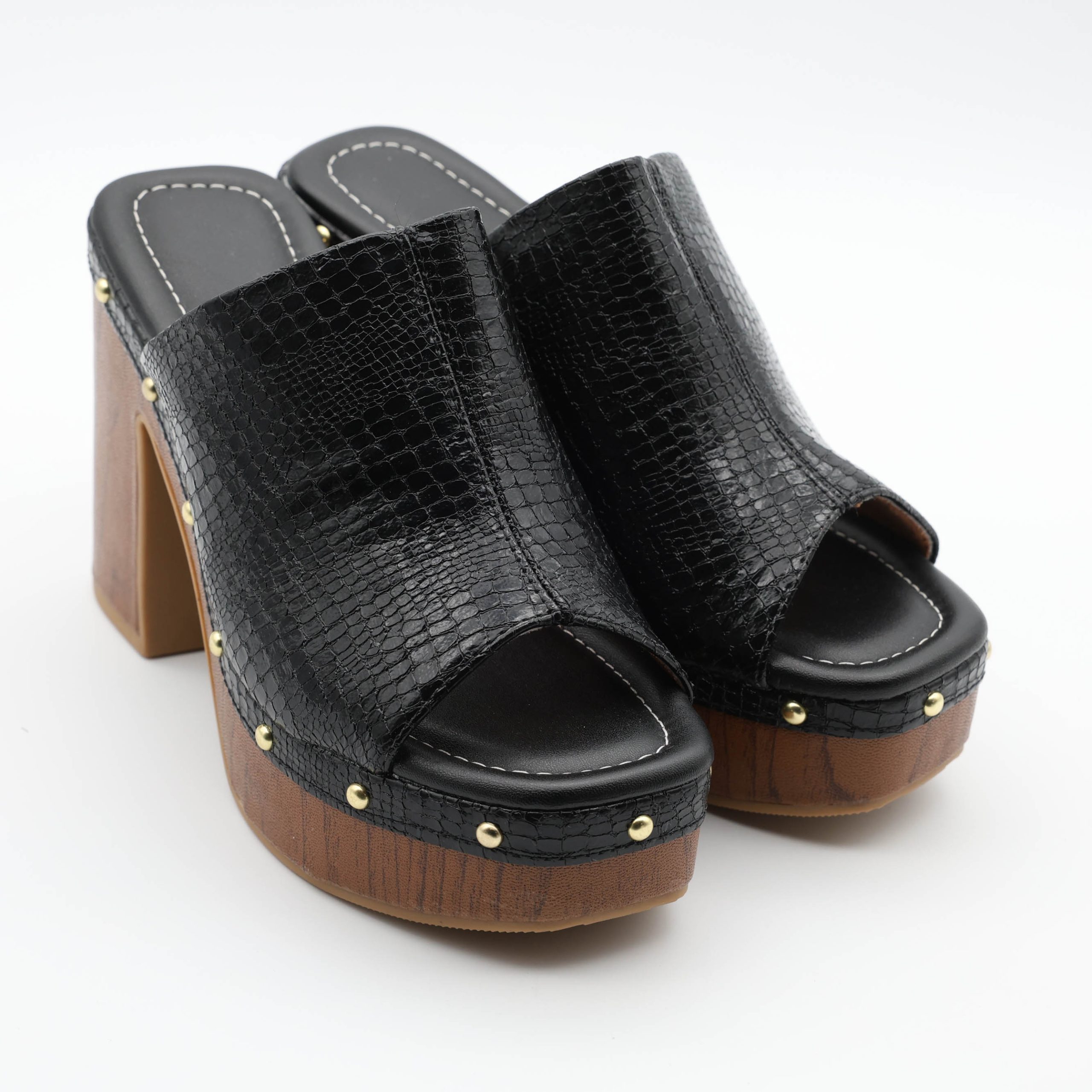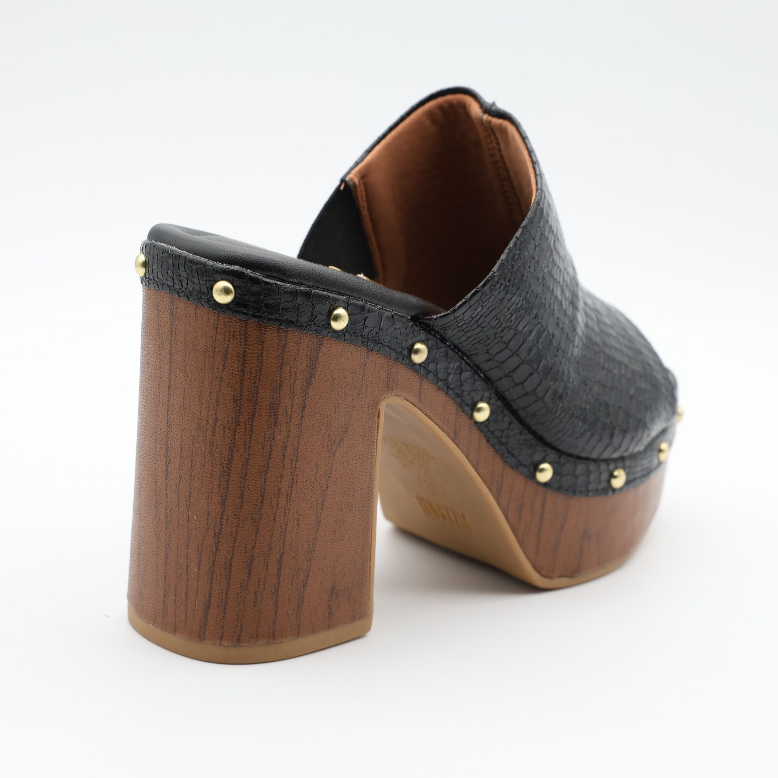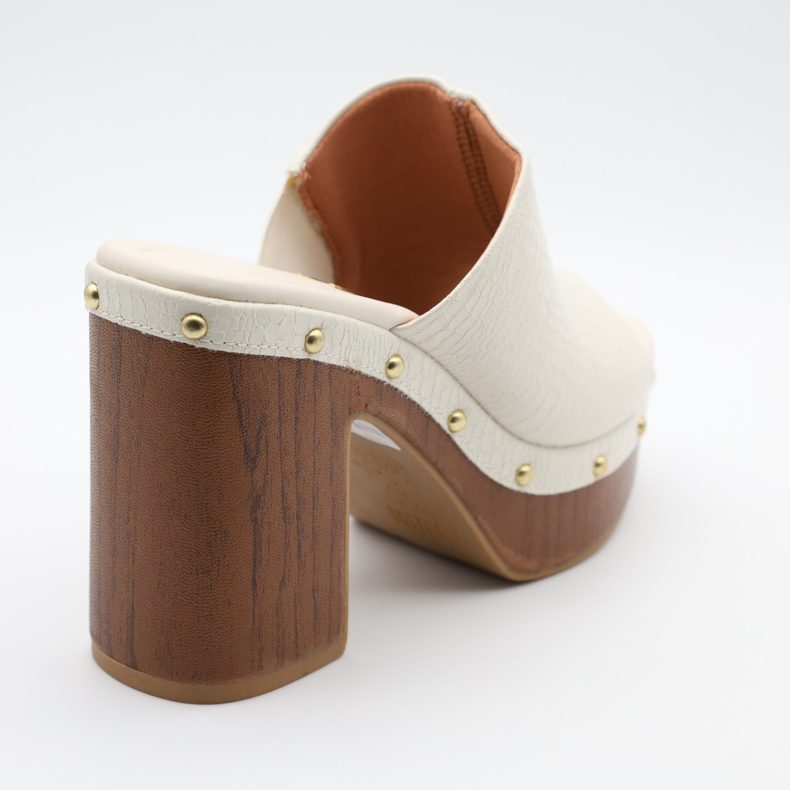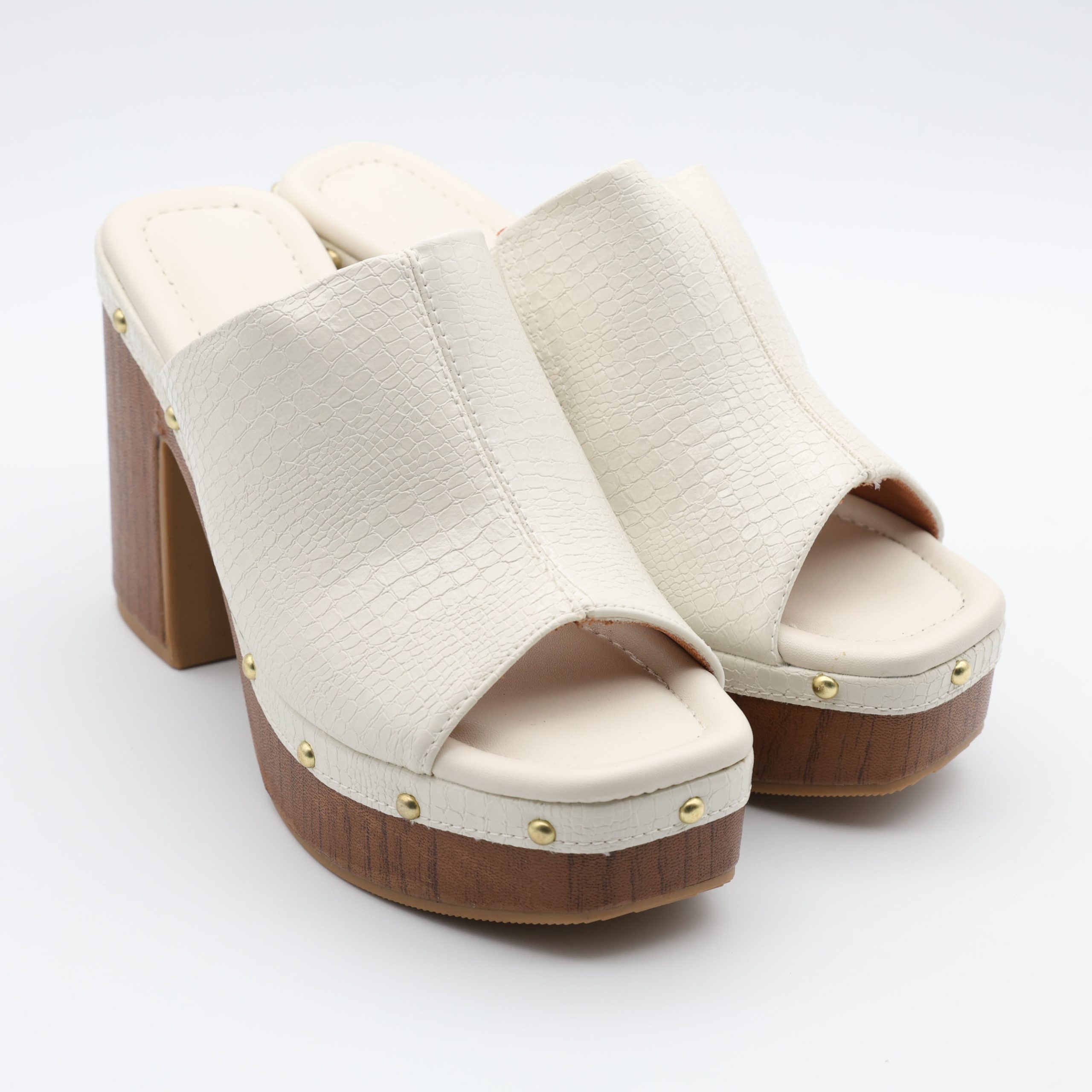 As chinelas 6541.205.30395 da Vizzano apresentam um design moderno com salto robusto. O contraste entre a gáspea lisa e a sola efeito madeira cria um visual distinto. Assim, são ideais para ocasiões especiais.