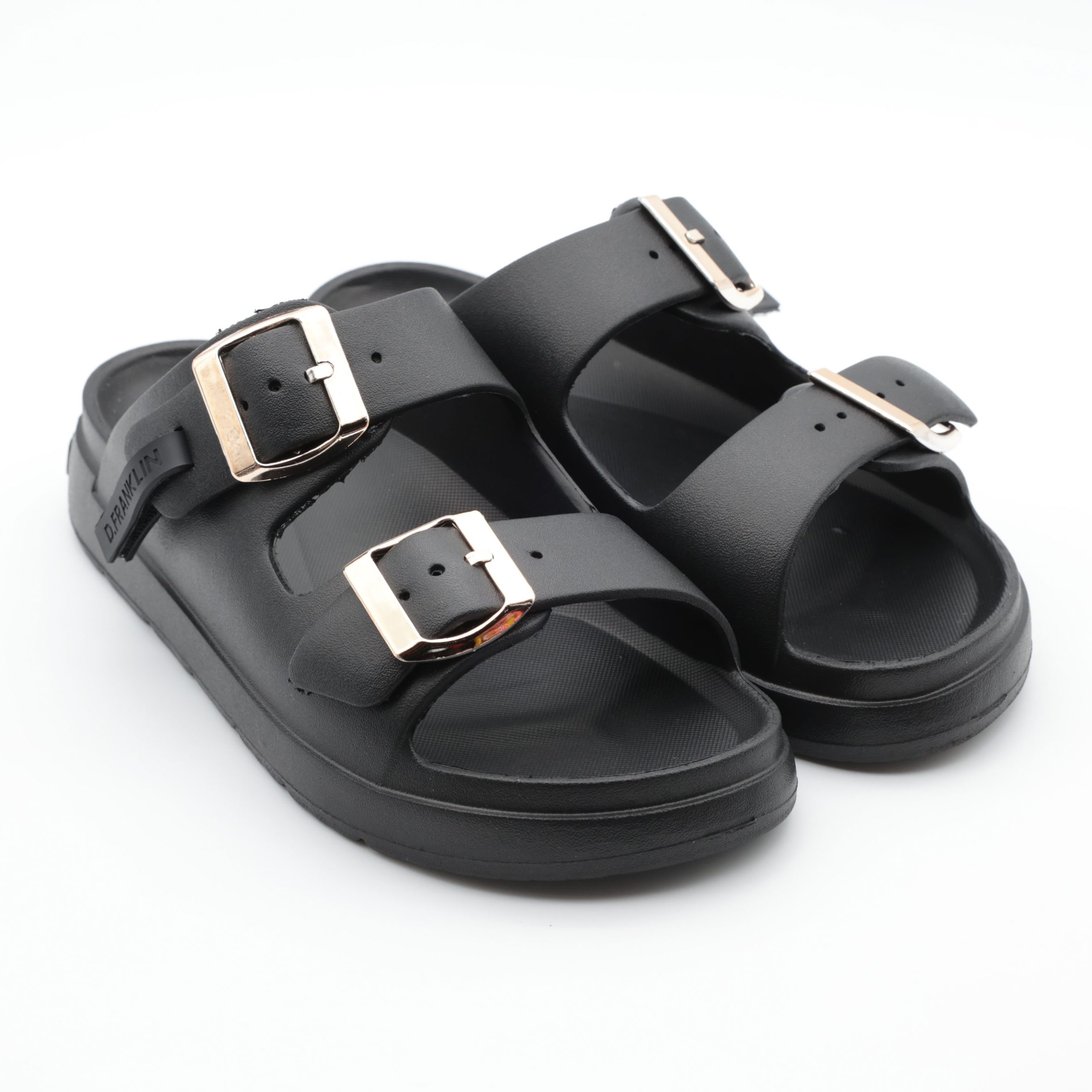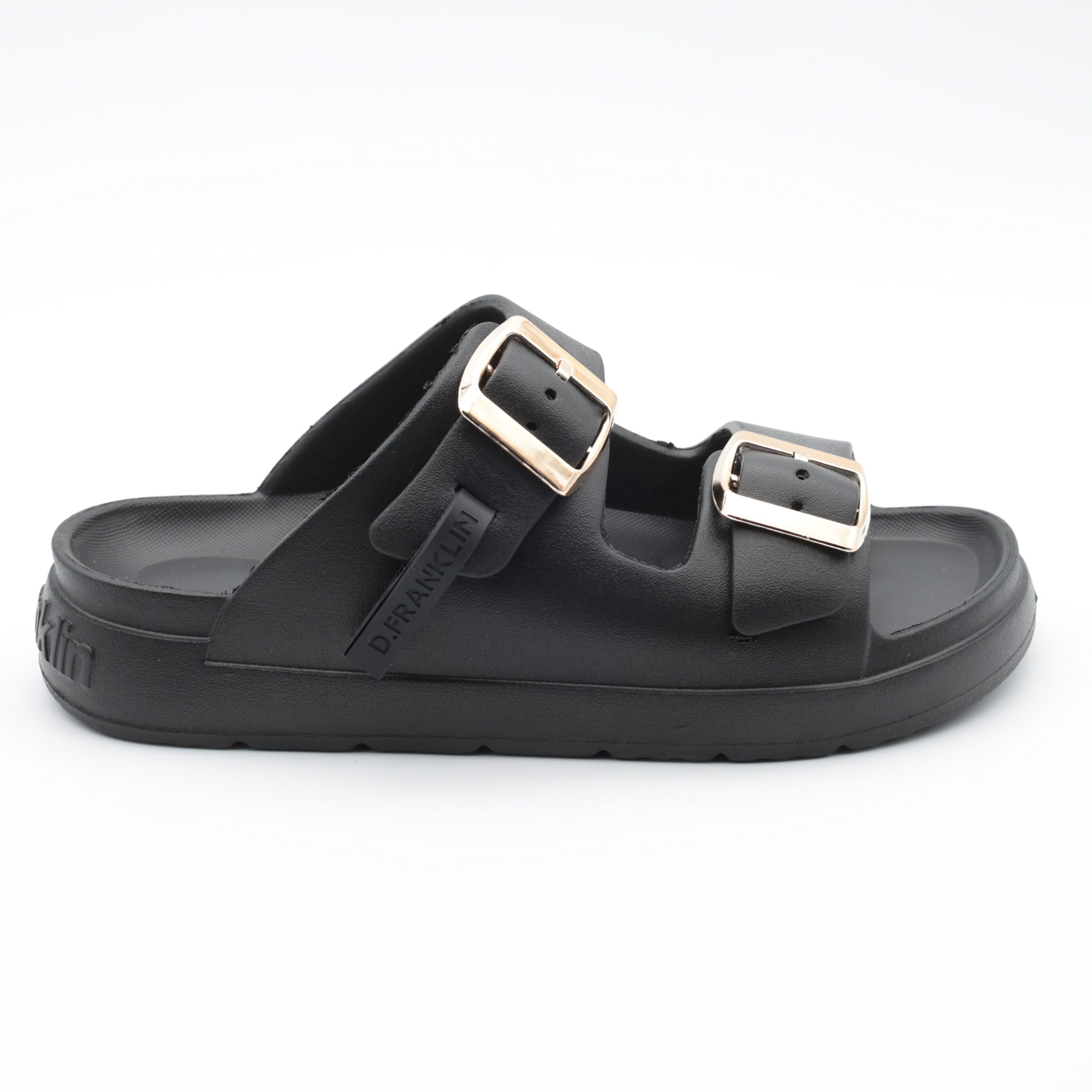 Chinelos senhora D.Franklin Vibe Foam 2 Buckles Black / Platinum com atitude urbana e conforto total 🖤