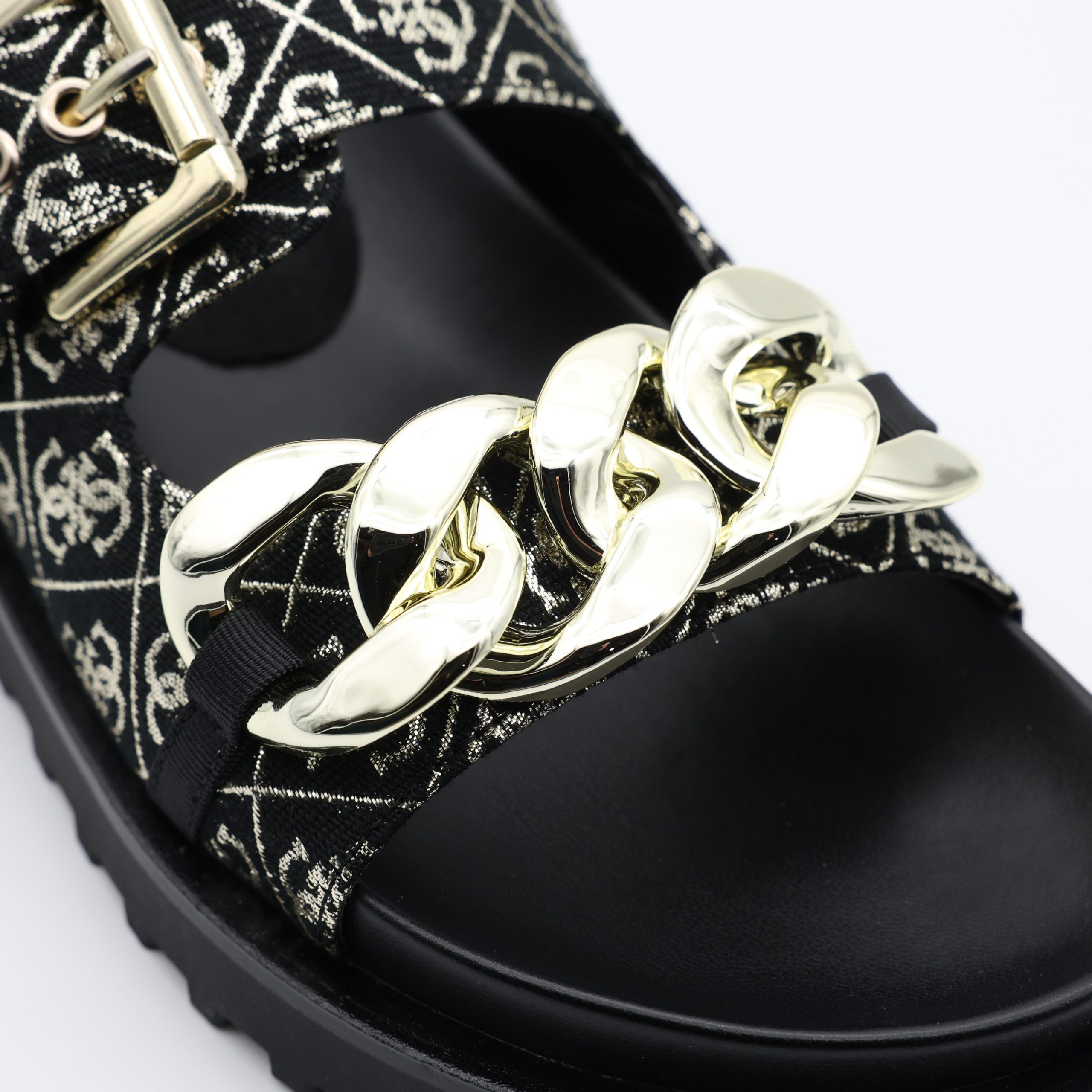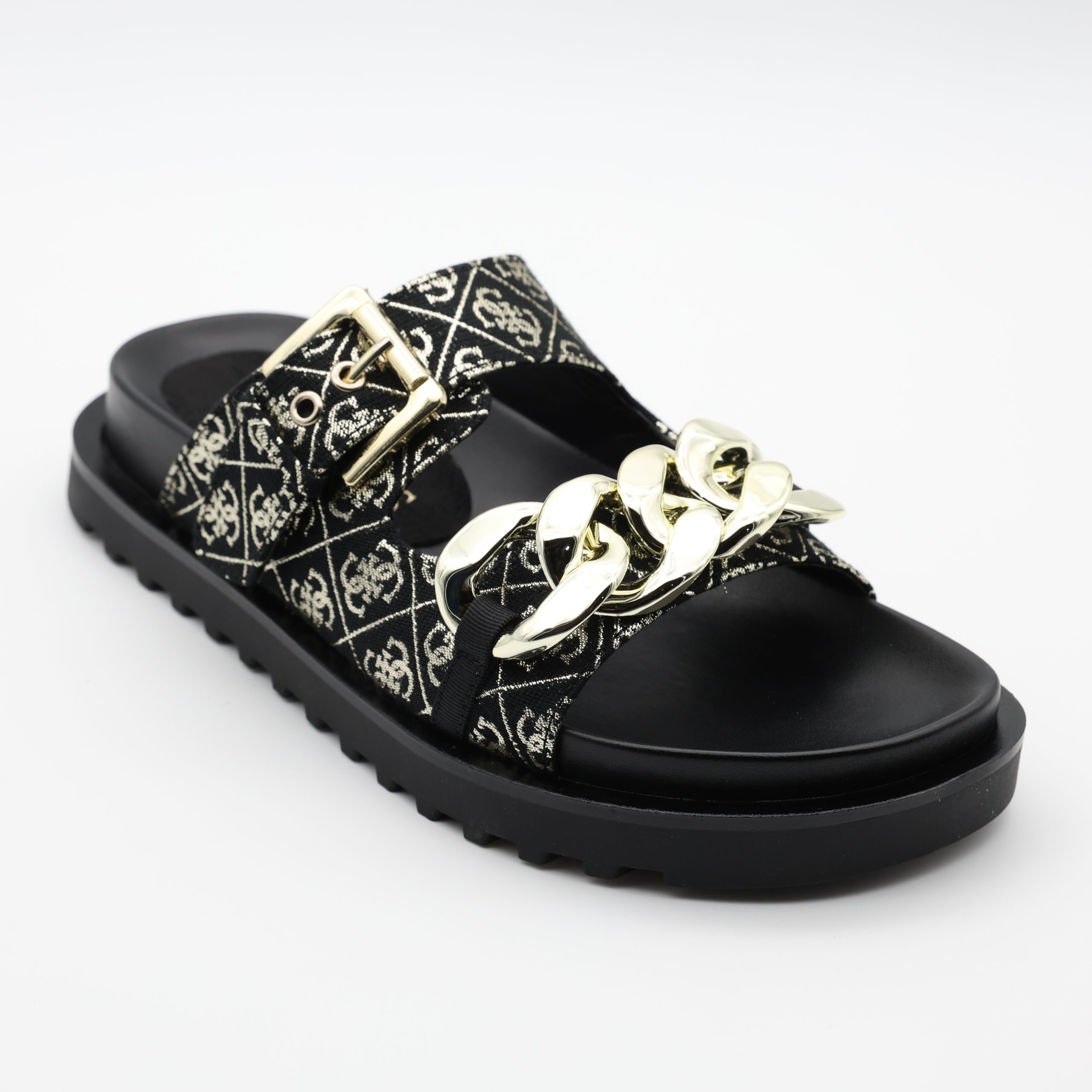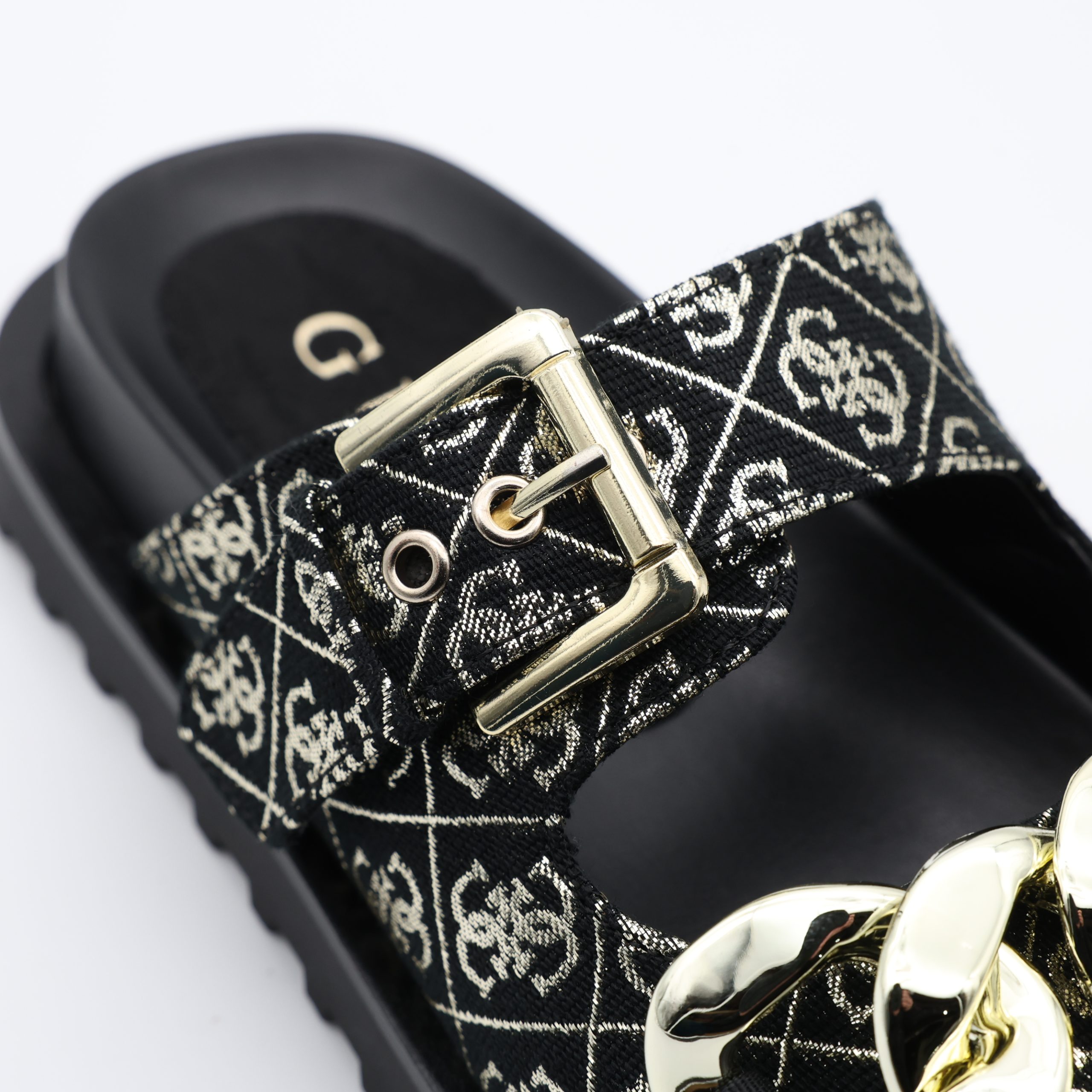 Os chinelos Fatema da GUESS combinam conforto descontraído com um visual moderno e cheio de atitude. Perfeitos para os dias de verão ou momentos de relax, destacam-se pelos detalhes de assinatura da marca, conferindo-lhes um toque fashion mesmo em looks mais casuais.
