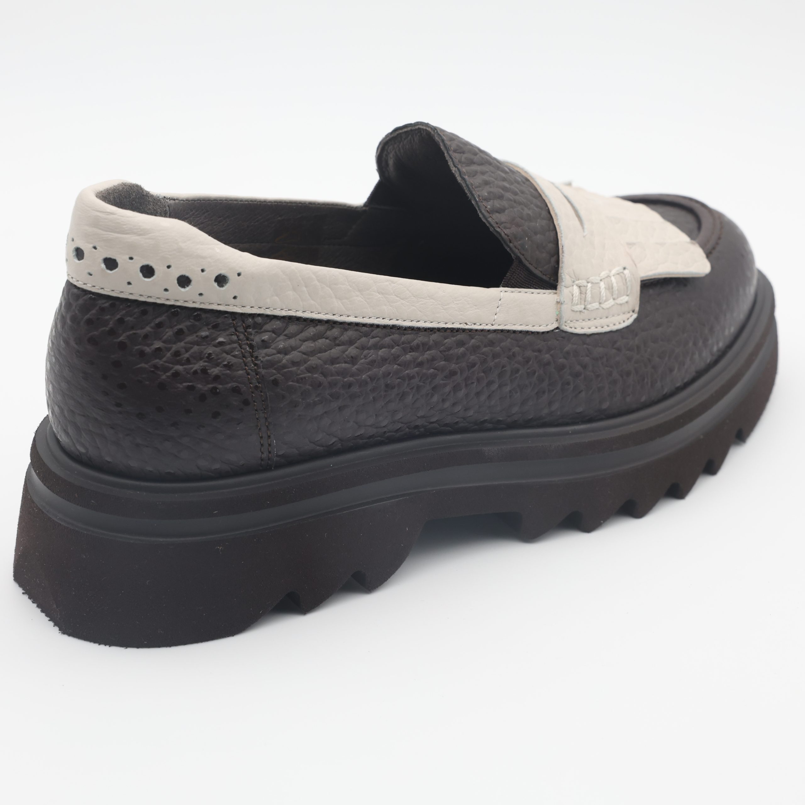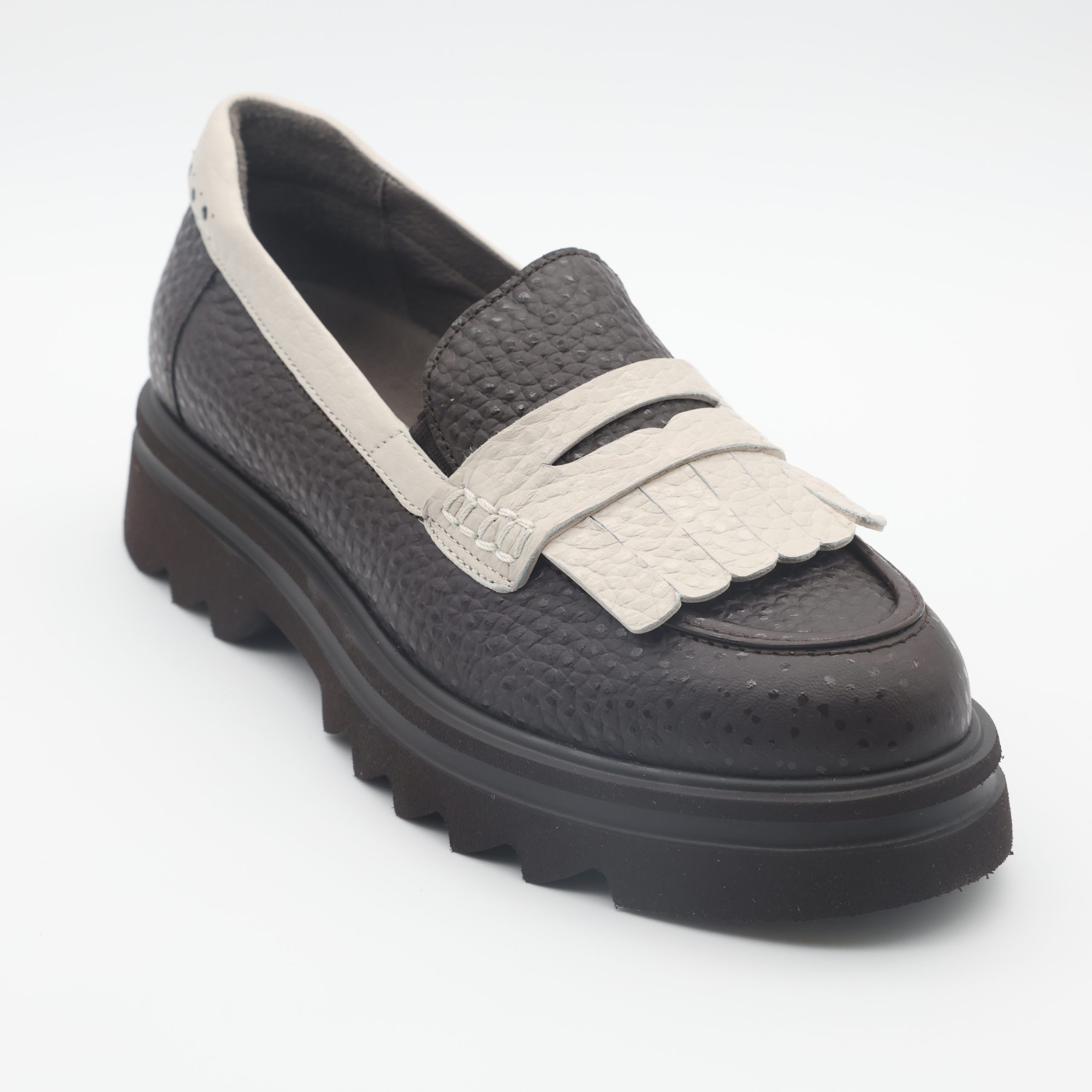 O Loafer Softwaves Maddie traduz elegância e conforto num só modelo. O tom castanho chocolate com textura “coco” e acabamento brilhante dá um toque sofisticado e moderno, perfeito para looks urbanos com distinção.