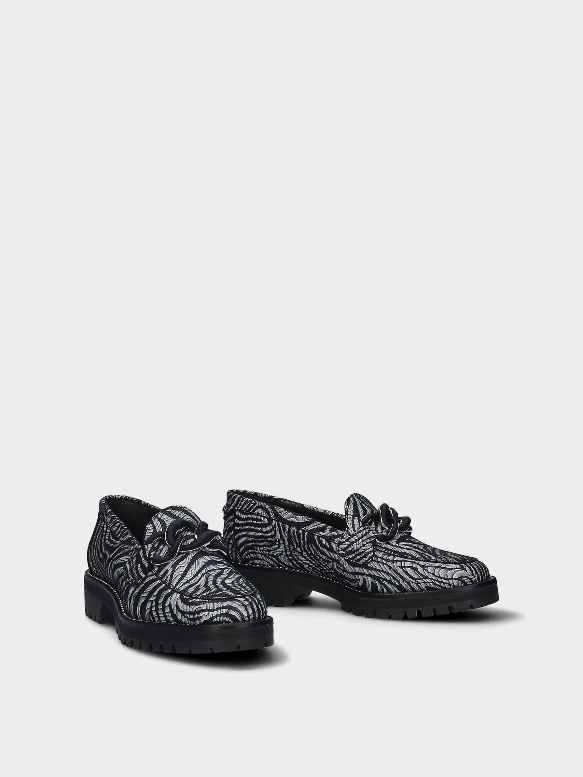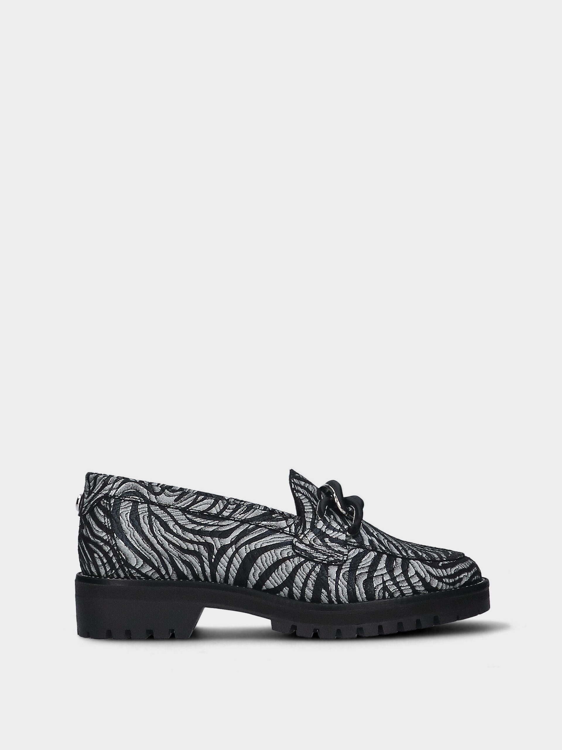 O loafer Raquel80 da MLV combina sofisticação e elegância moderna. Com acabamento em pele verniz texturada com padrão zebra e fivela mate, representa bem o estilo casual chic.