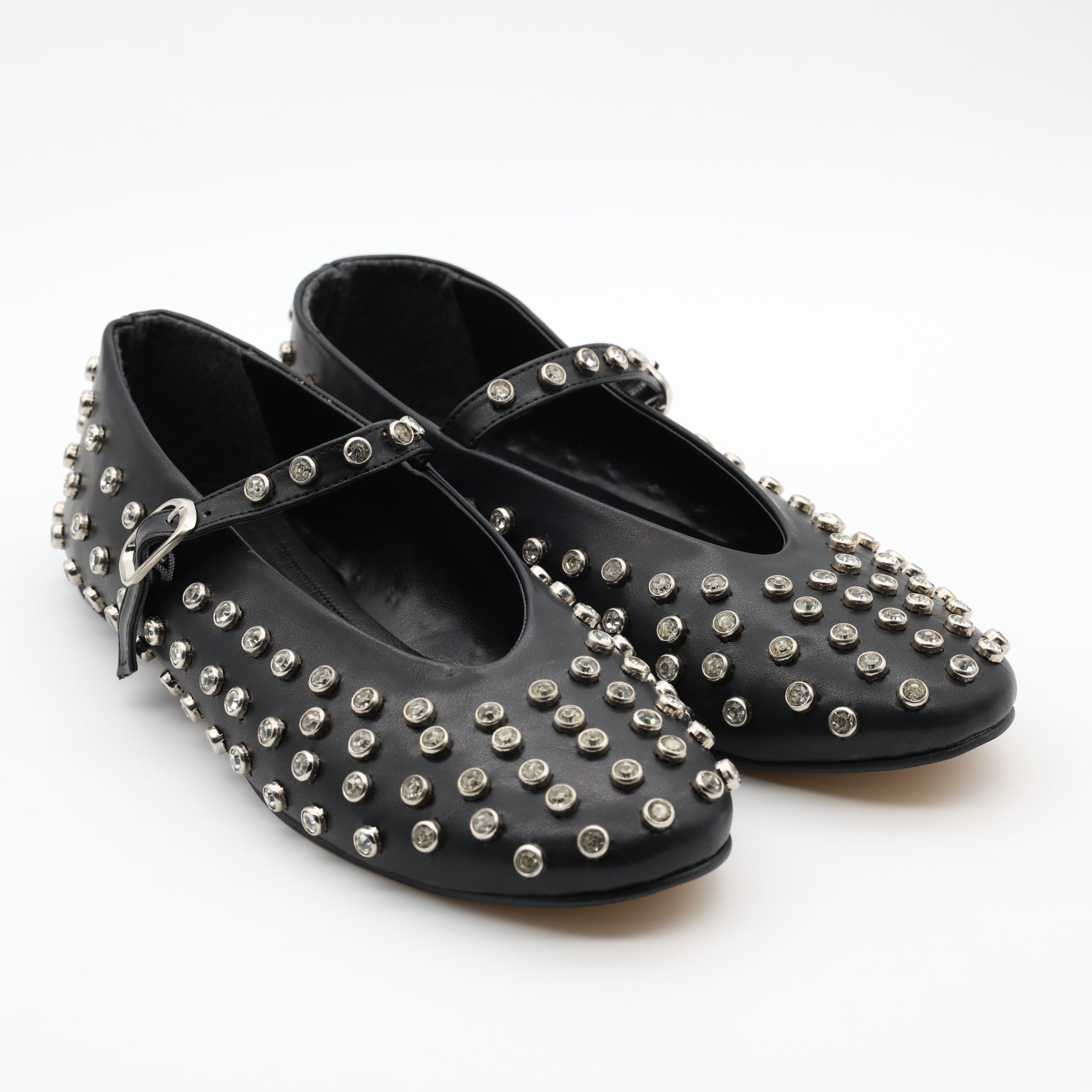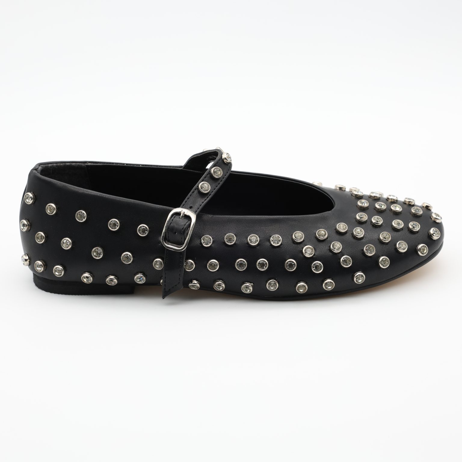 A Sabrina EXÉ M15-01 é o equilíbrio perfeito entre o charme intemporal e o toque irreverente. O design clássico das sabrinas é reinventado com tachas metálicas e uma tira ajustável com fivela, conferindo um visual moderno e arrojado.