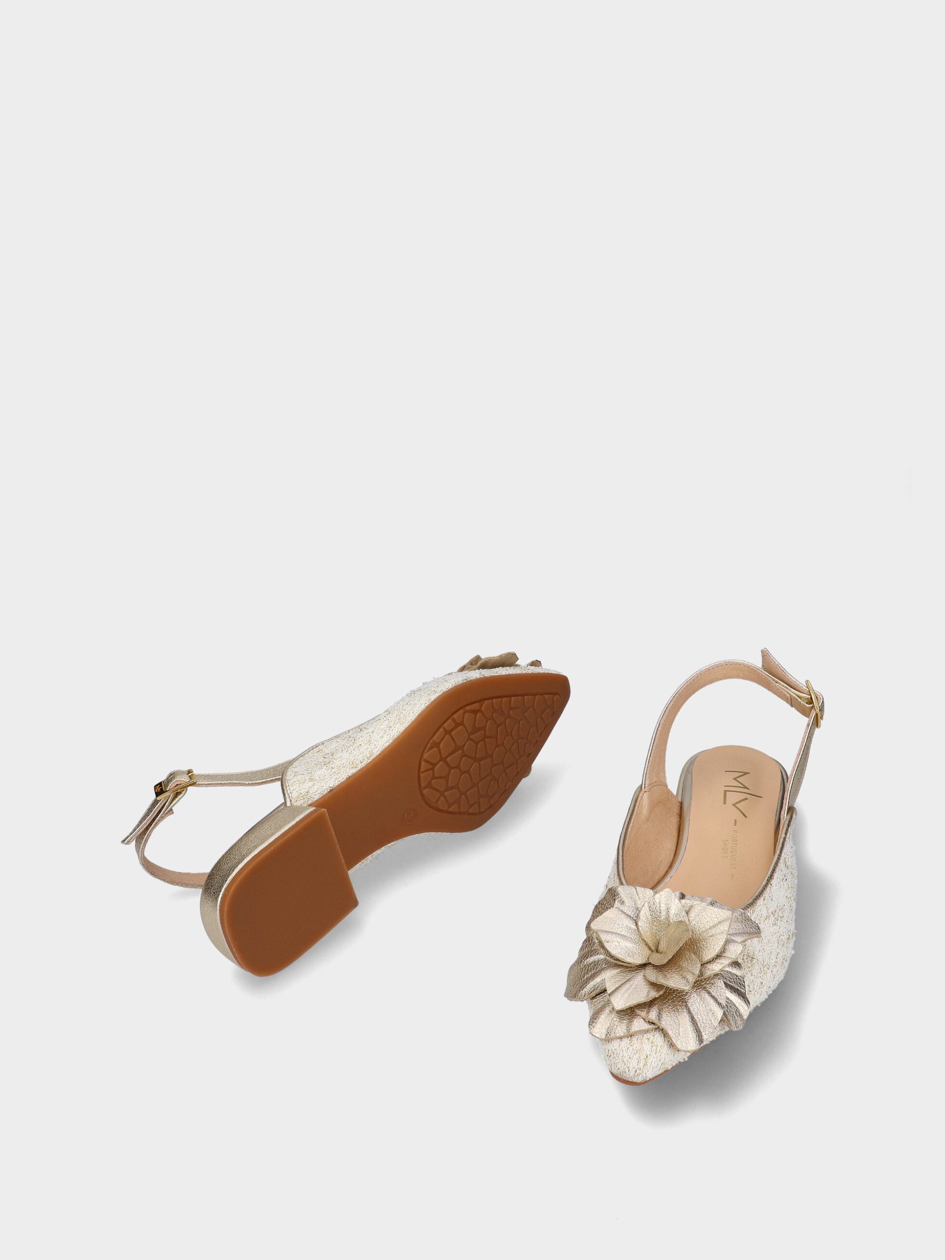 As sabrinas Lea101 da MLV destacam-se pelo design feminino com detalhe floral. O acabamento suave cria um visual elegante e intemporal.