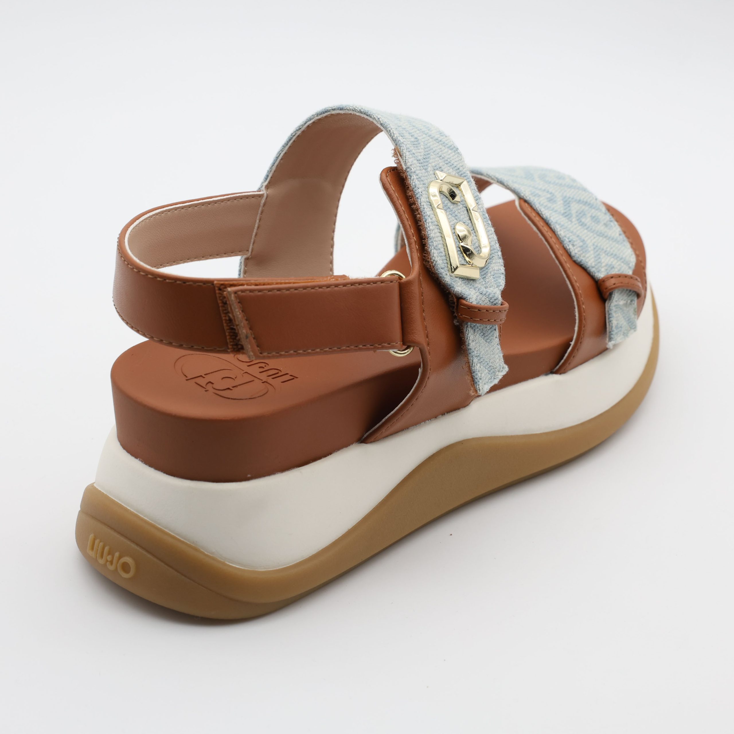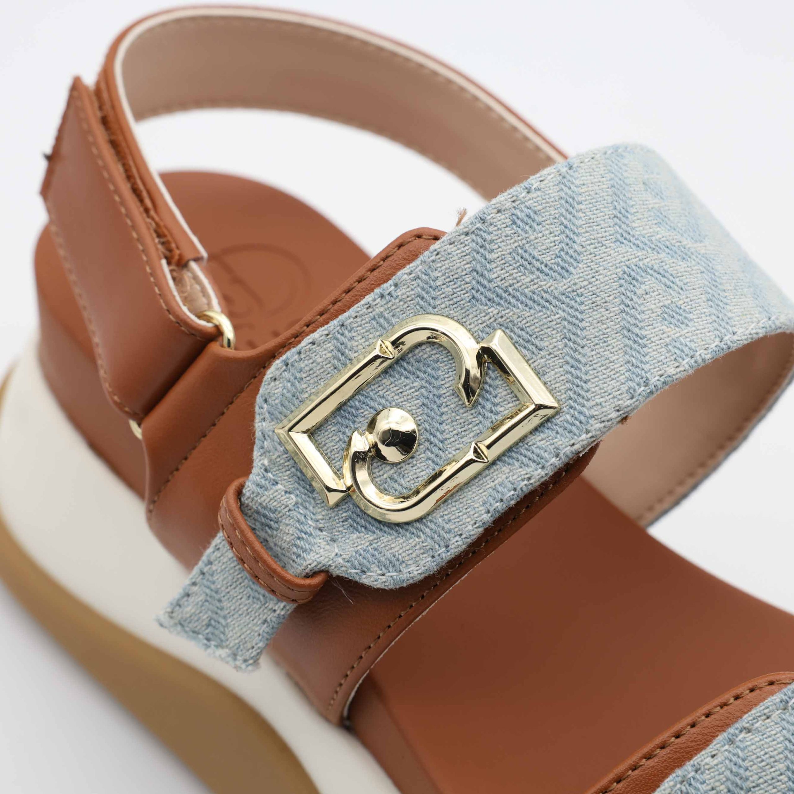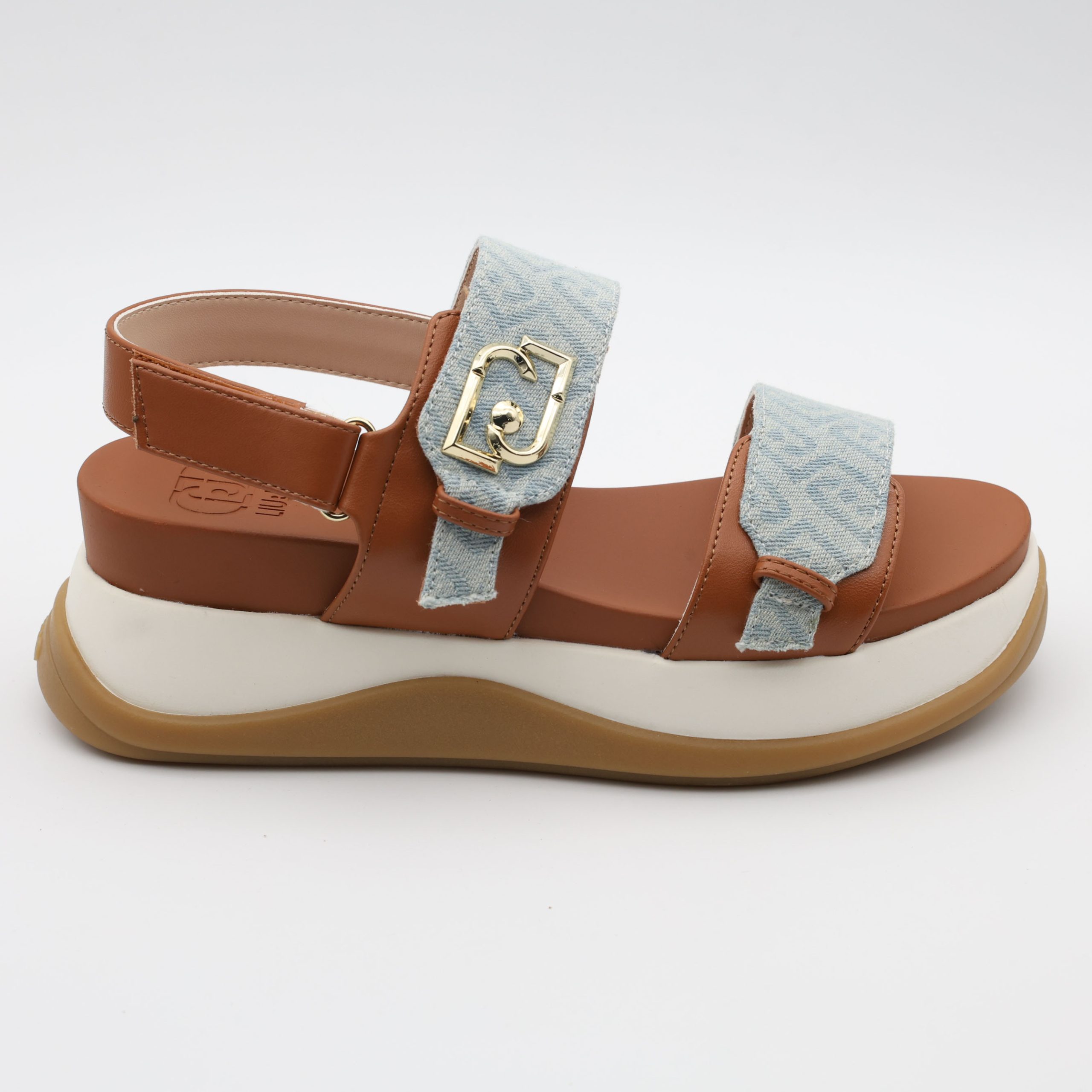 👡 Exterior: tiras em material sintético combinadas com tecido monograma Liu Jo e fecho ajustável que permite um ajuste prático e confortável