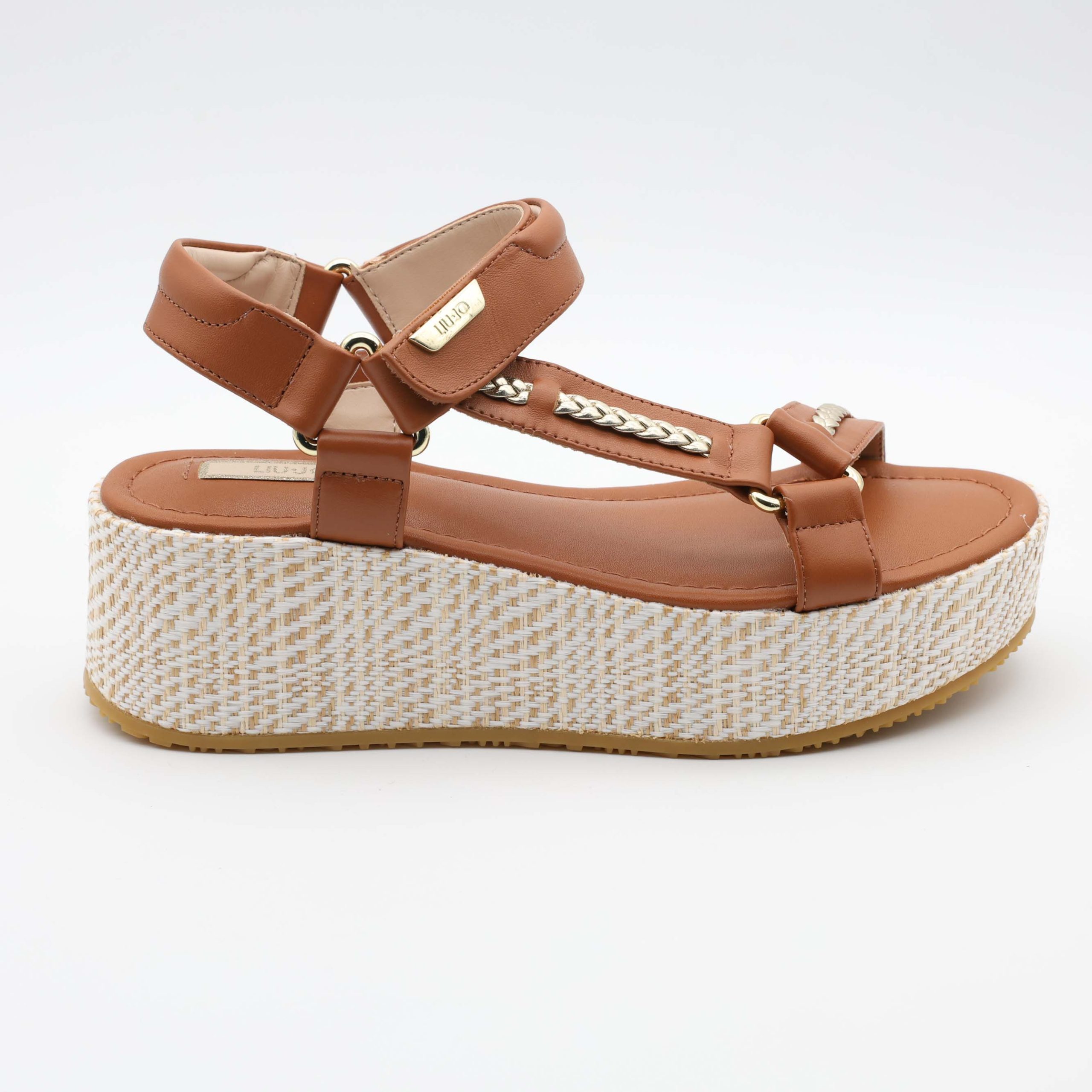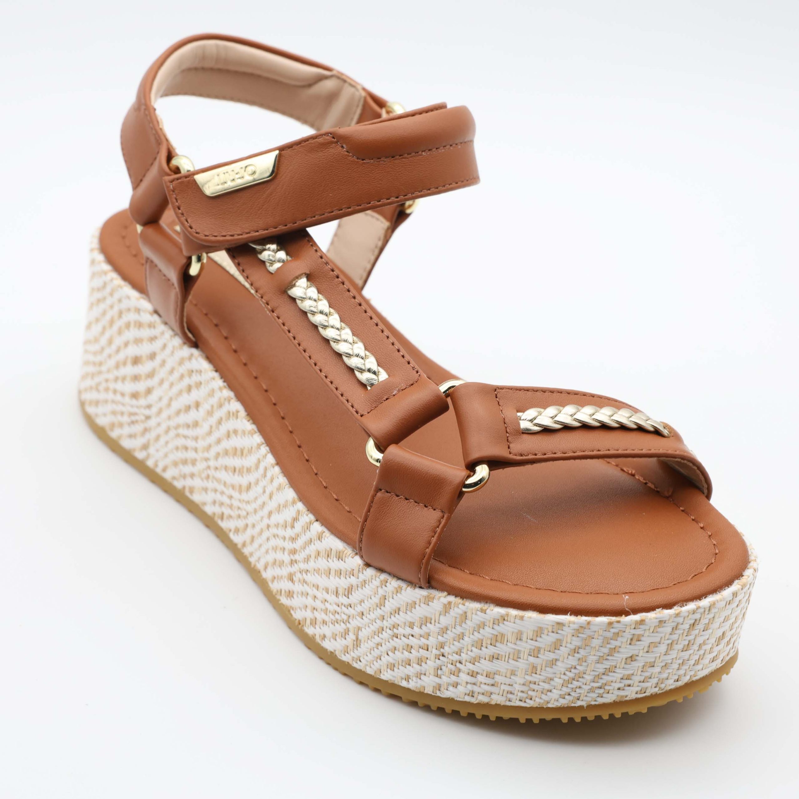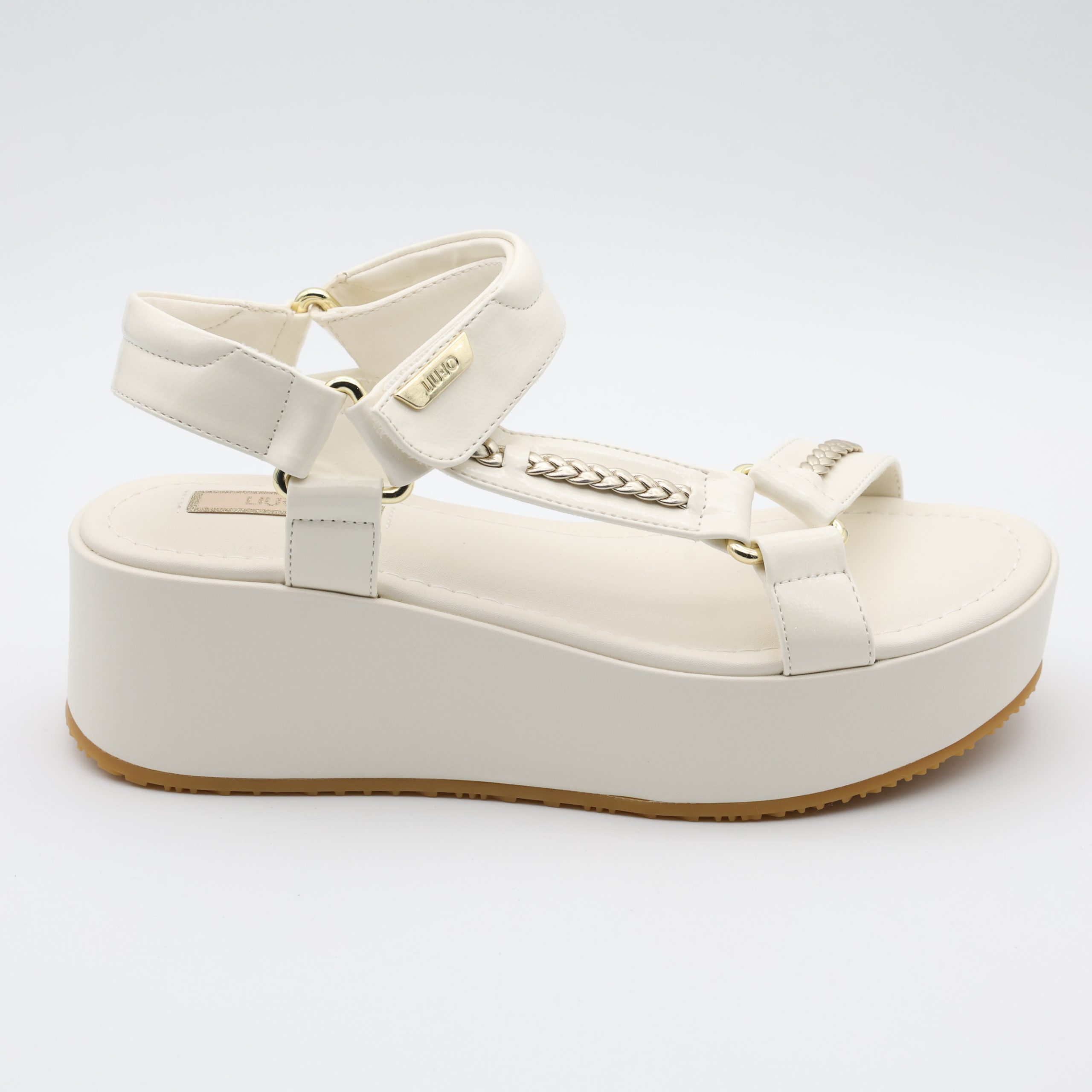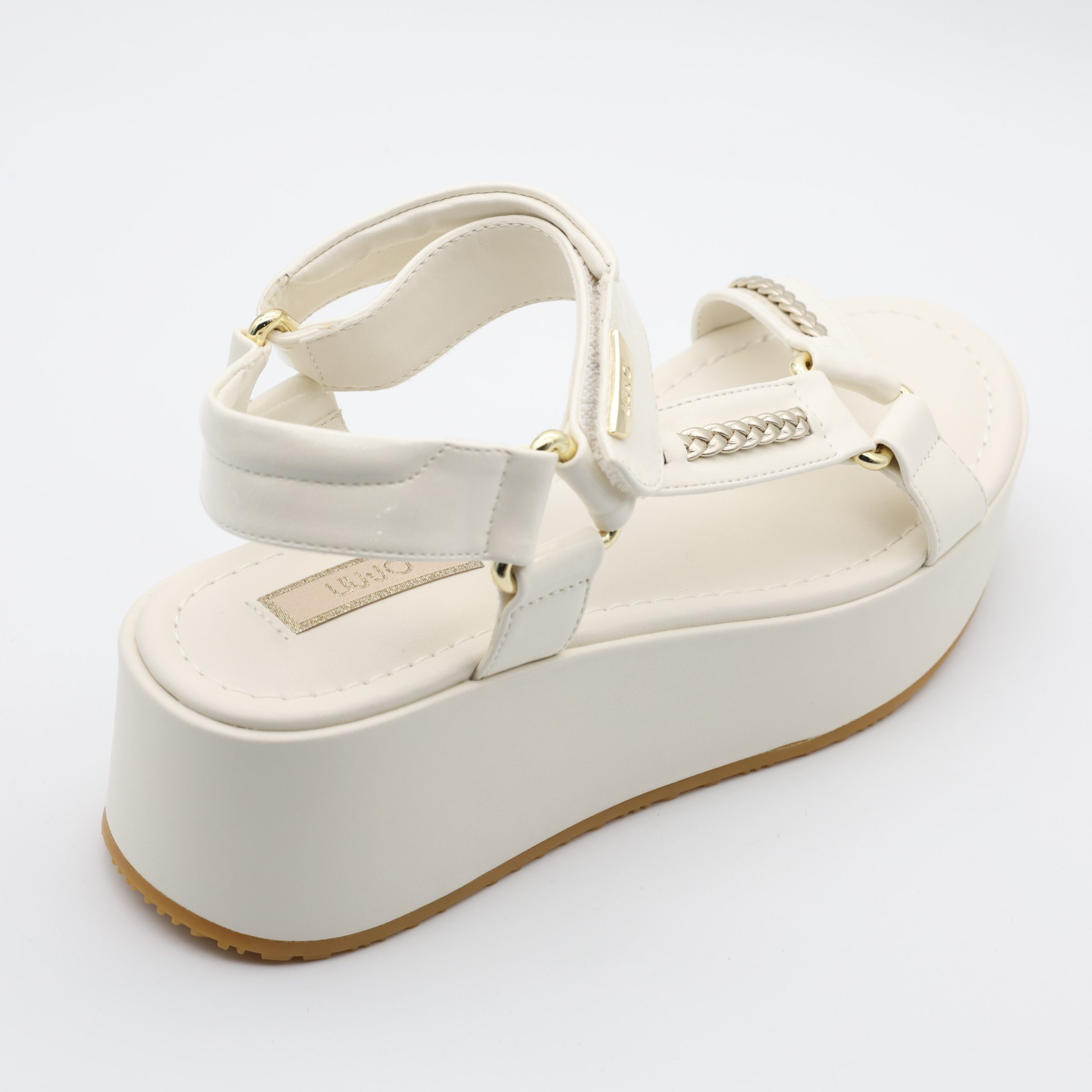 👡 Exterior: tiras em material sintético com acabamento suave, fecho ajustável em velcro e detalhes metálicos da Liu Jo que acrescentam um toque elegante