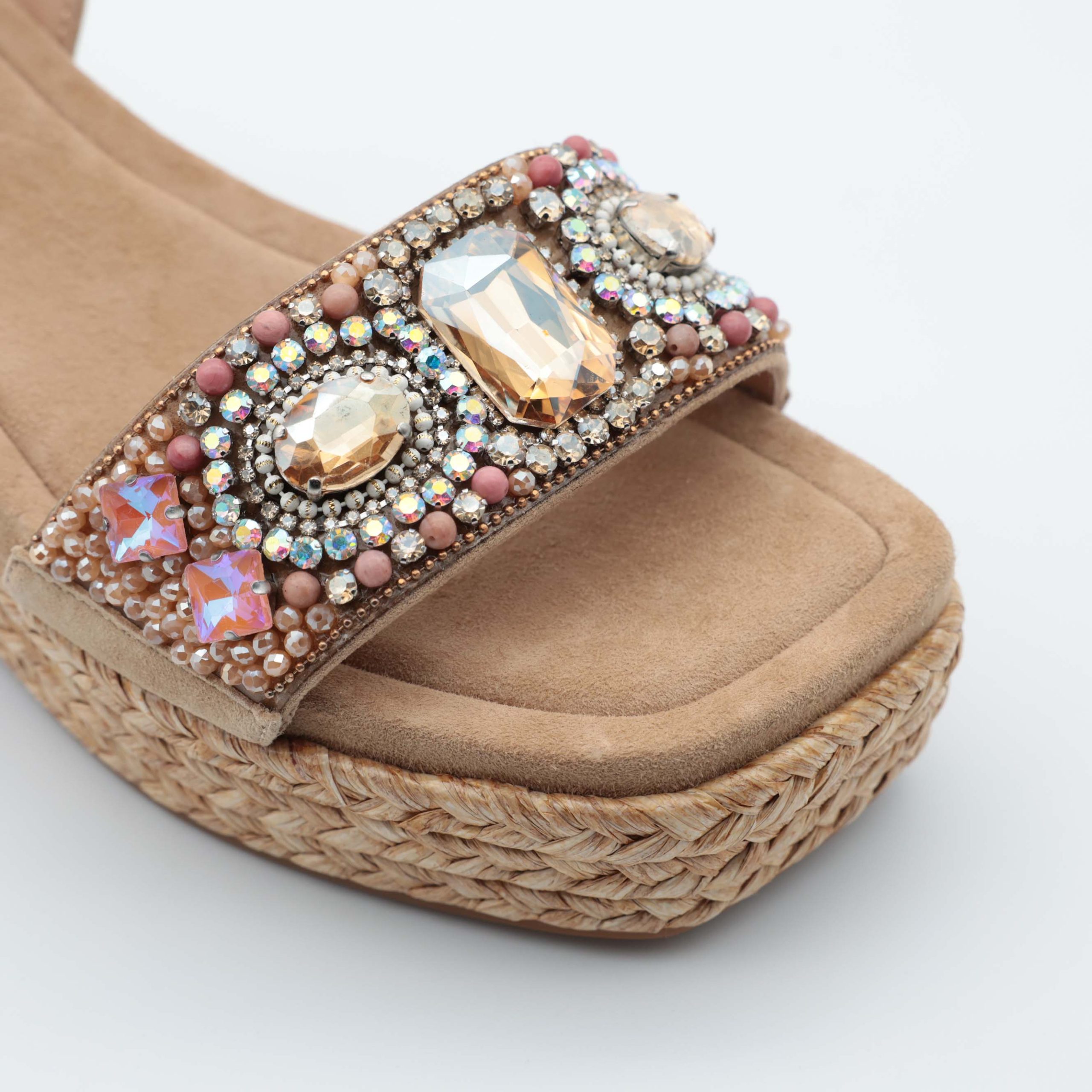 Ideais para complementar looks de verão com estilo, oferecem leveza e estabilidade ao caminhar. A cunha entrançada reforça o visual natural e moderno.