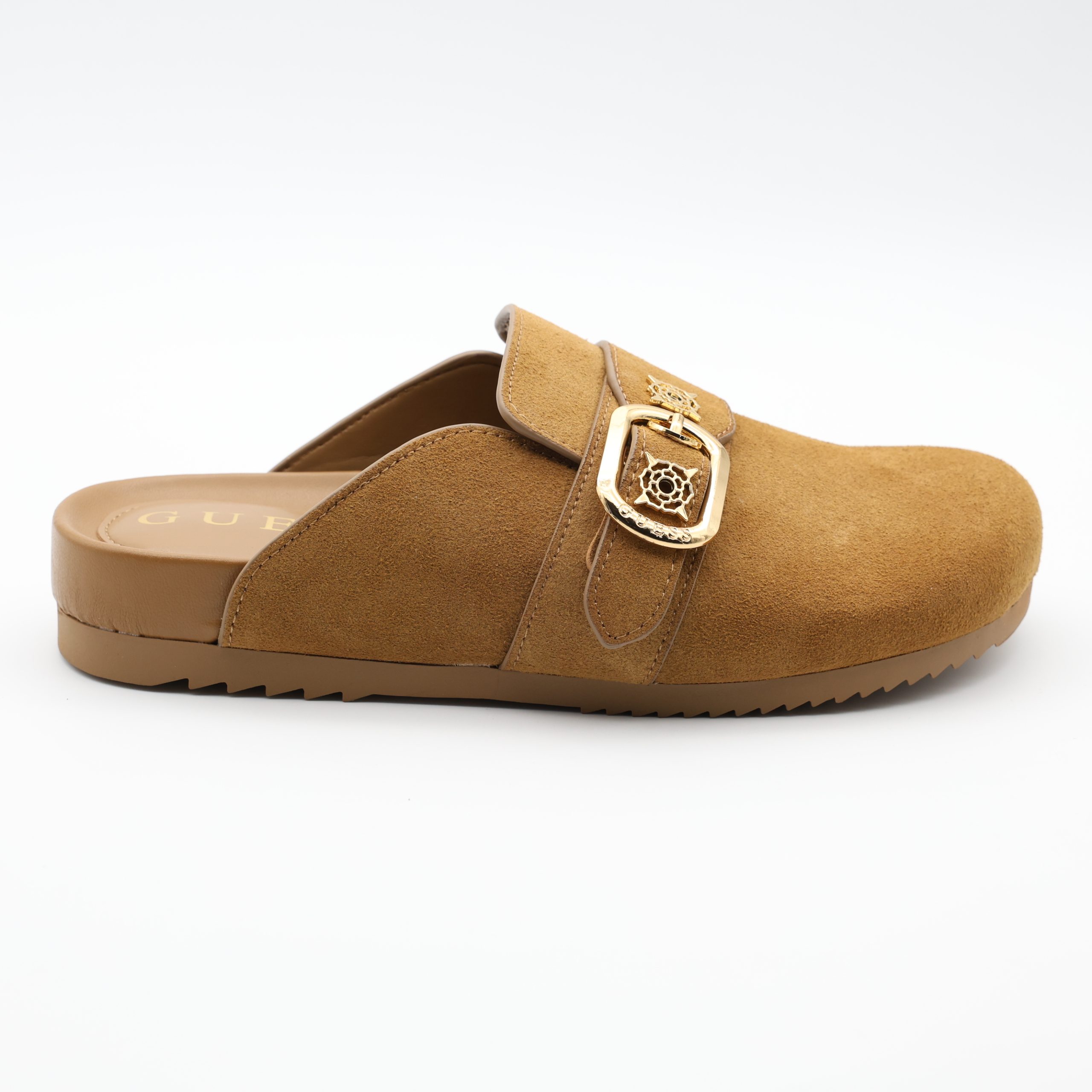 As socas Galavanta da GUESS combinam conforto descontraído com um estilo sofisticado e contemporâneo. Confeccionadas em camurça suave no elegante tom camel, destacam-se pela sua silhueta slip-on fácil de calçar e pelos detalhes de assinatura que refletem a estética icónica da marca.