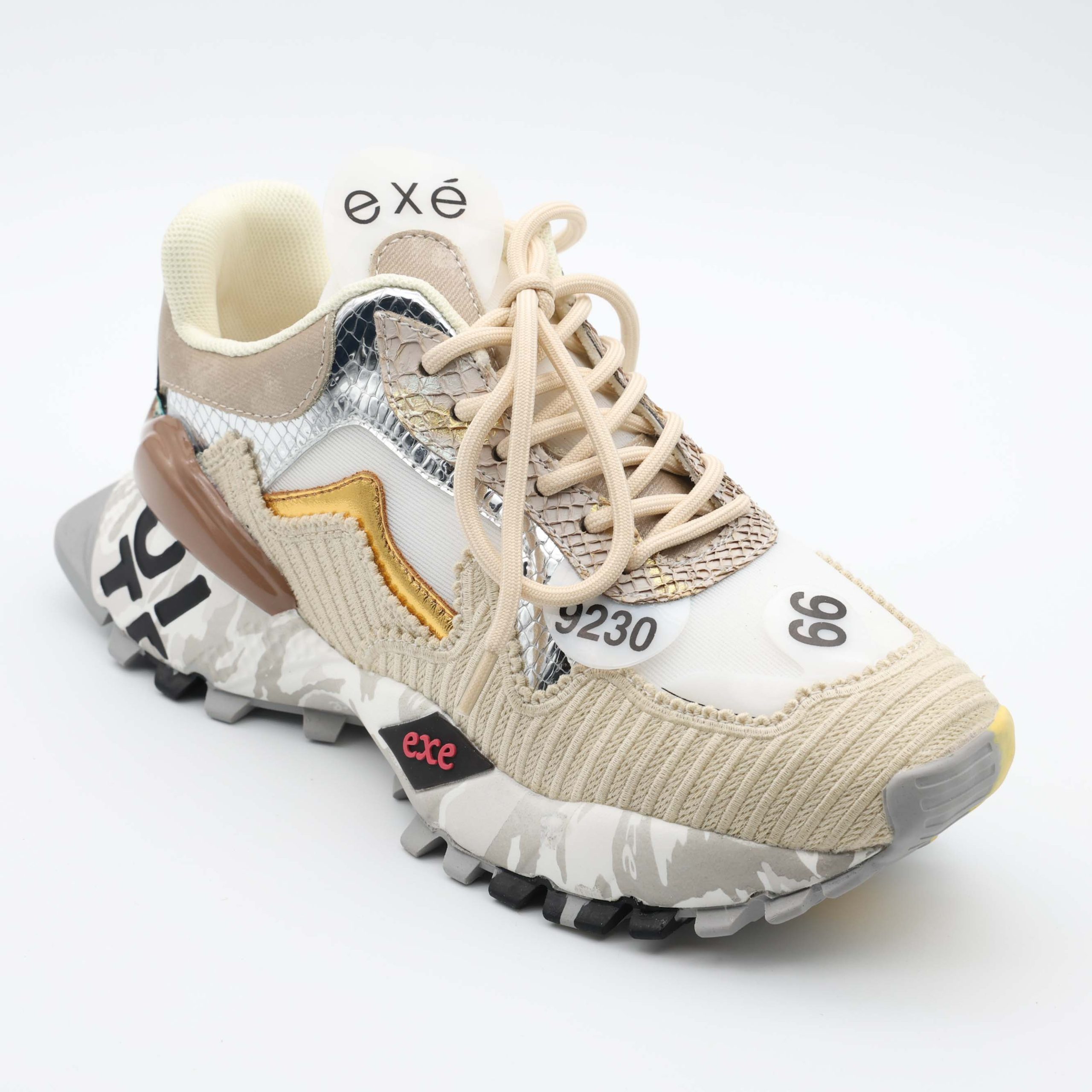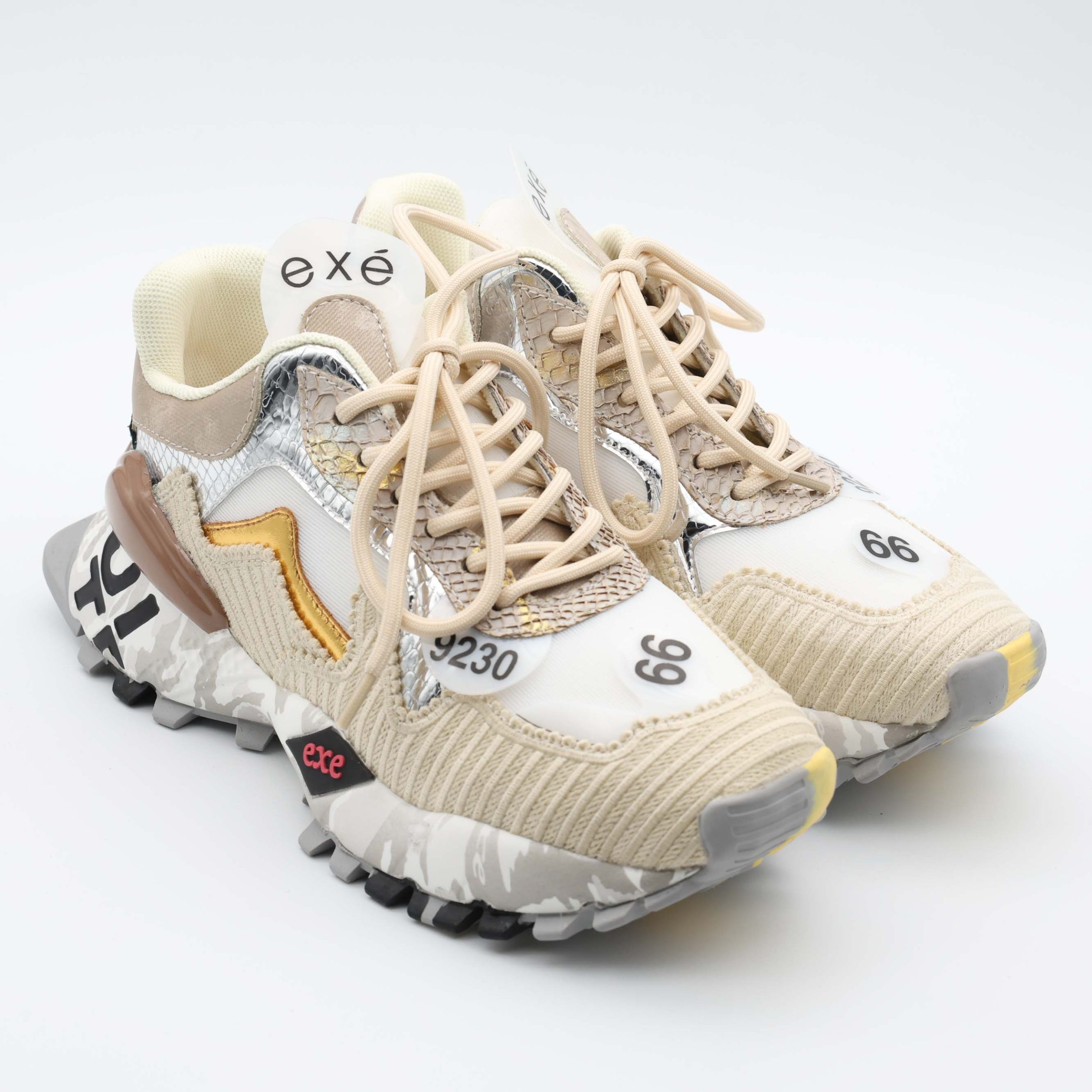 Os Ténis 134-28 Beige/Silver da EXÉ combinam tons neutros com detalhes metalizados. O resultado é um modelo moderno e cheio de atitude.