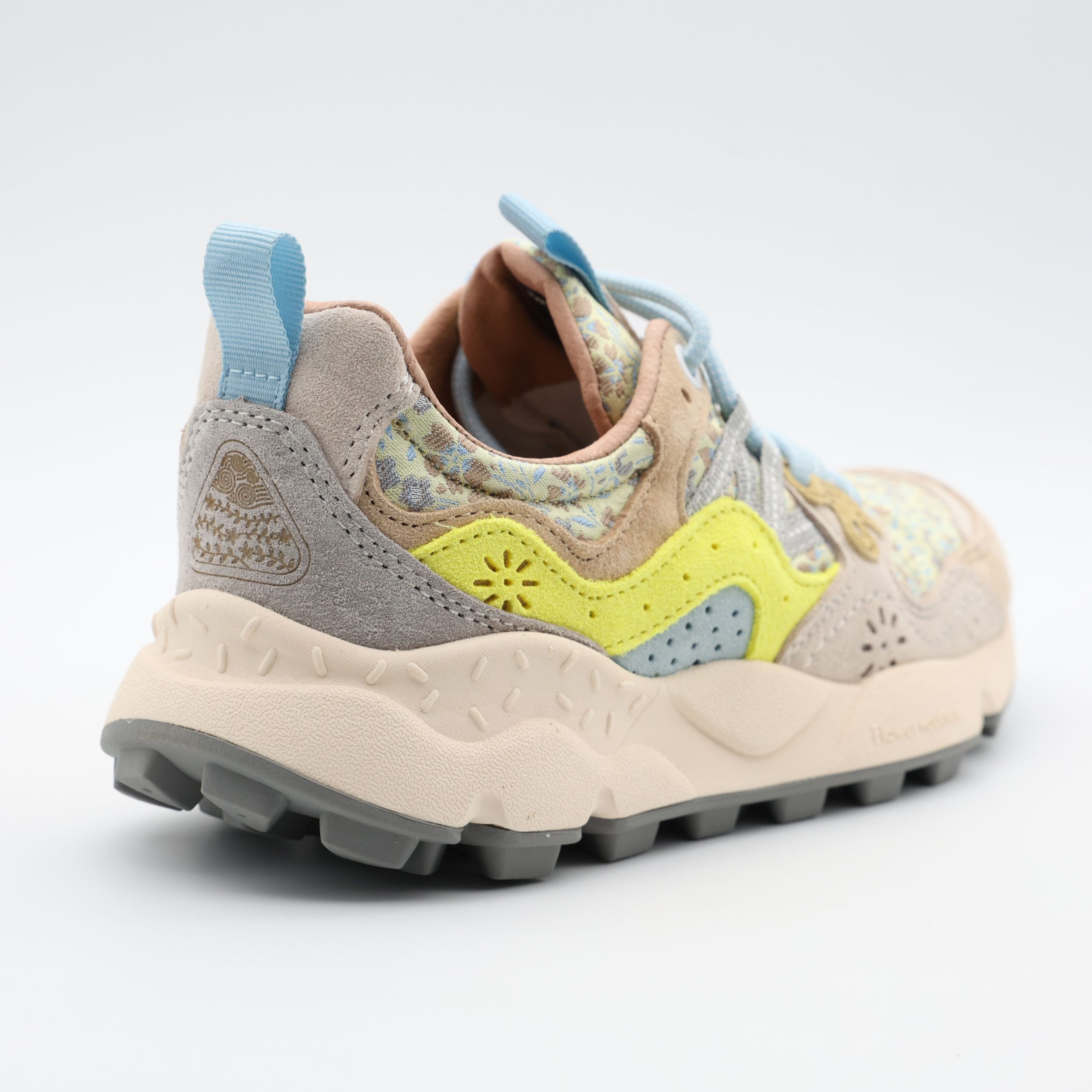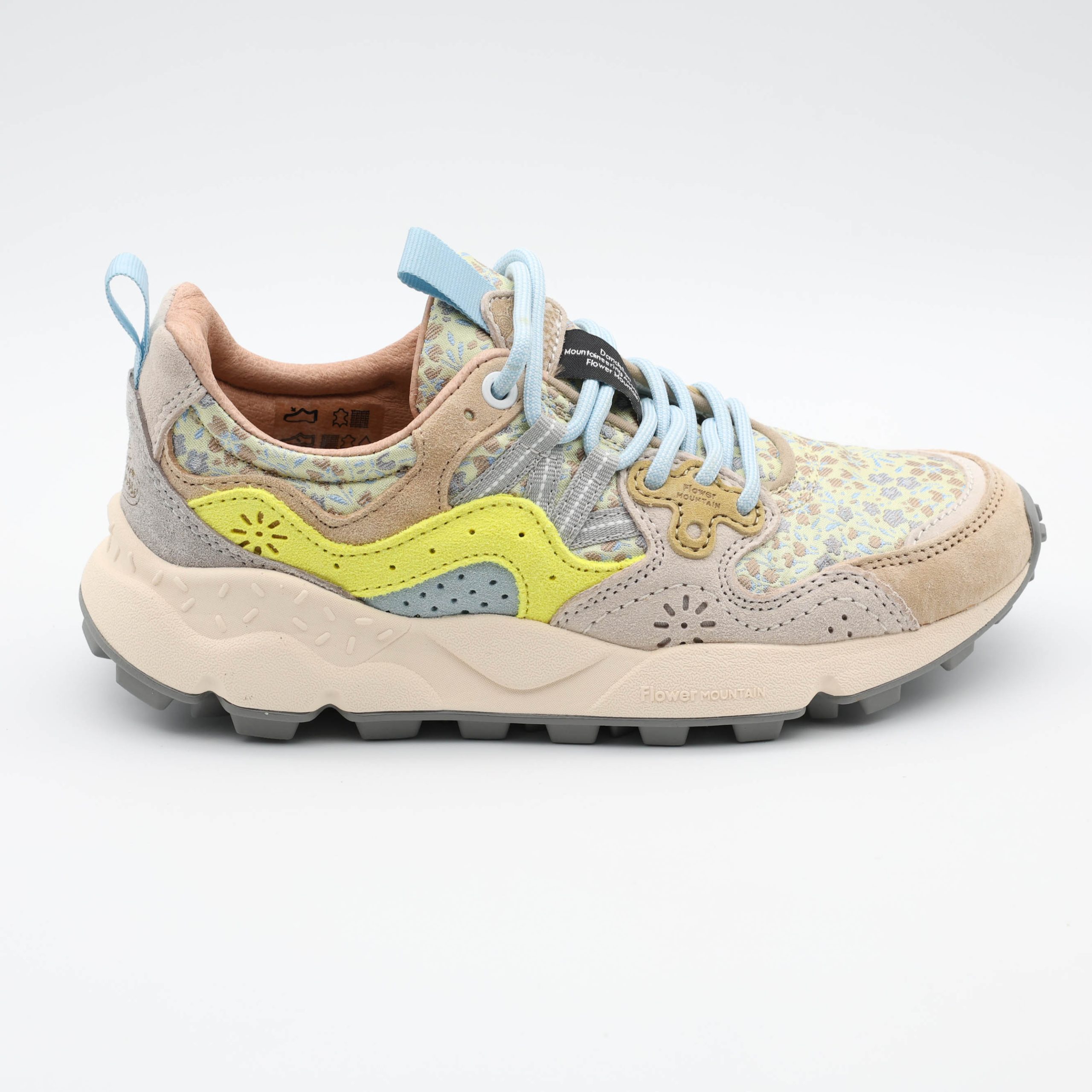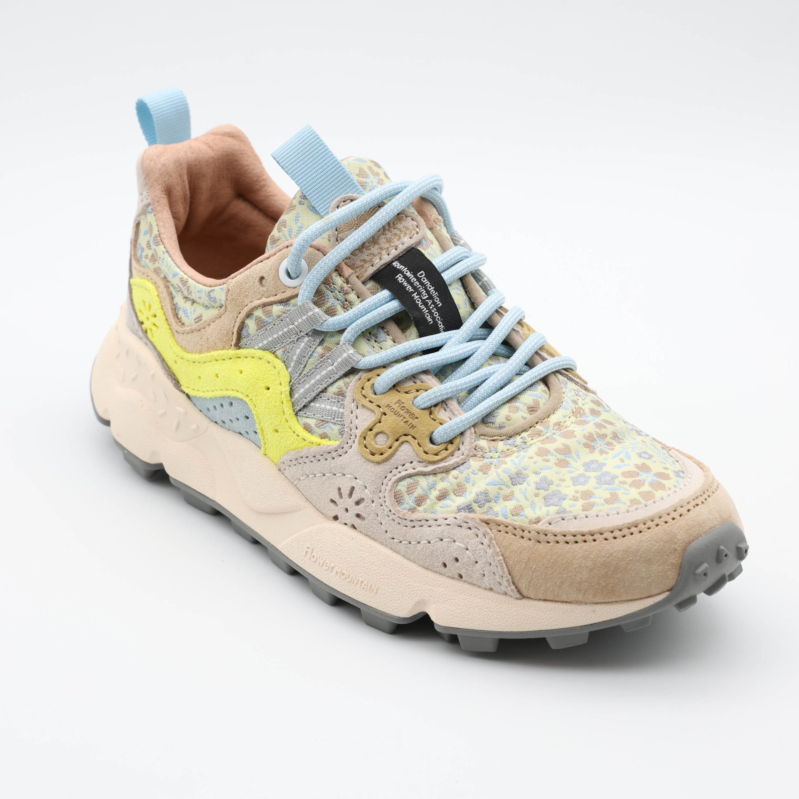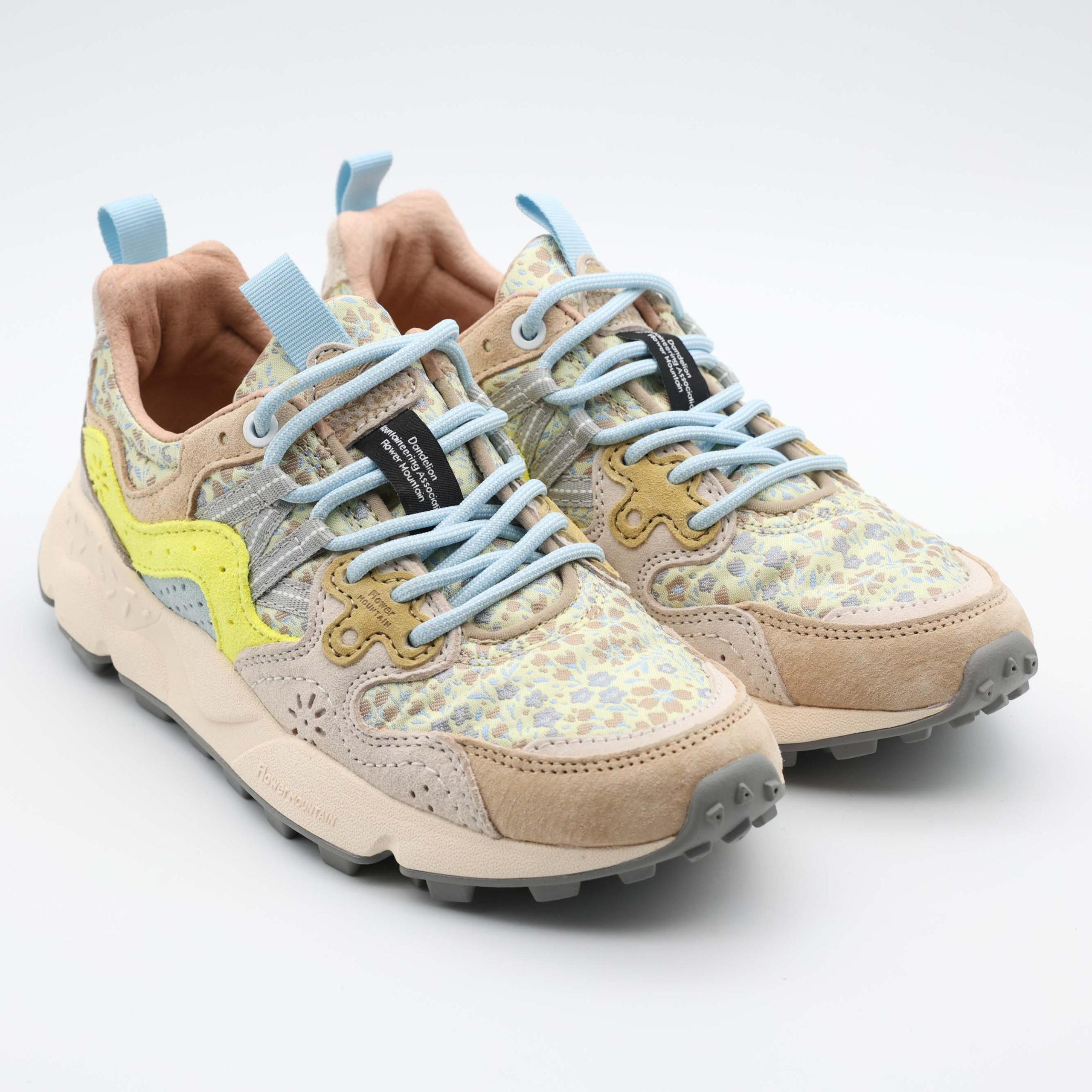 Inspirados na natureza, os ténis 2E01 da Flower Mountain destacam-se pela combinação de cores suaves e materiais texturizados. O design único cria um visual moderno e descontraído.