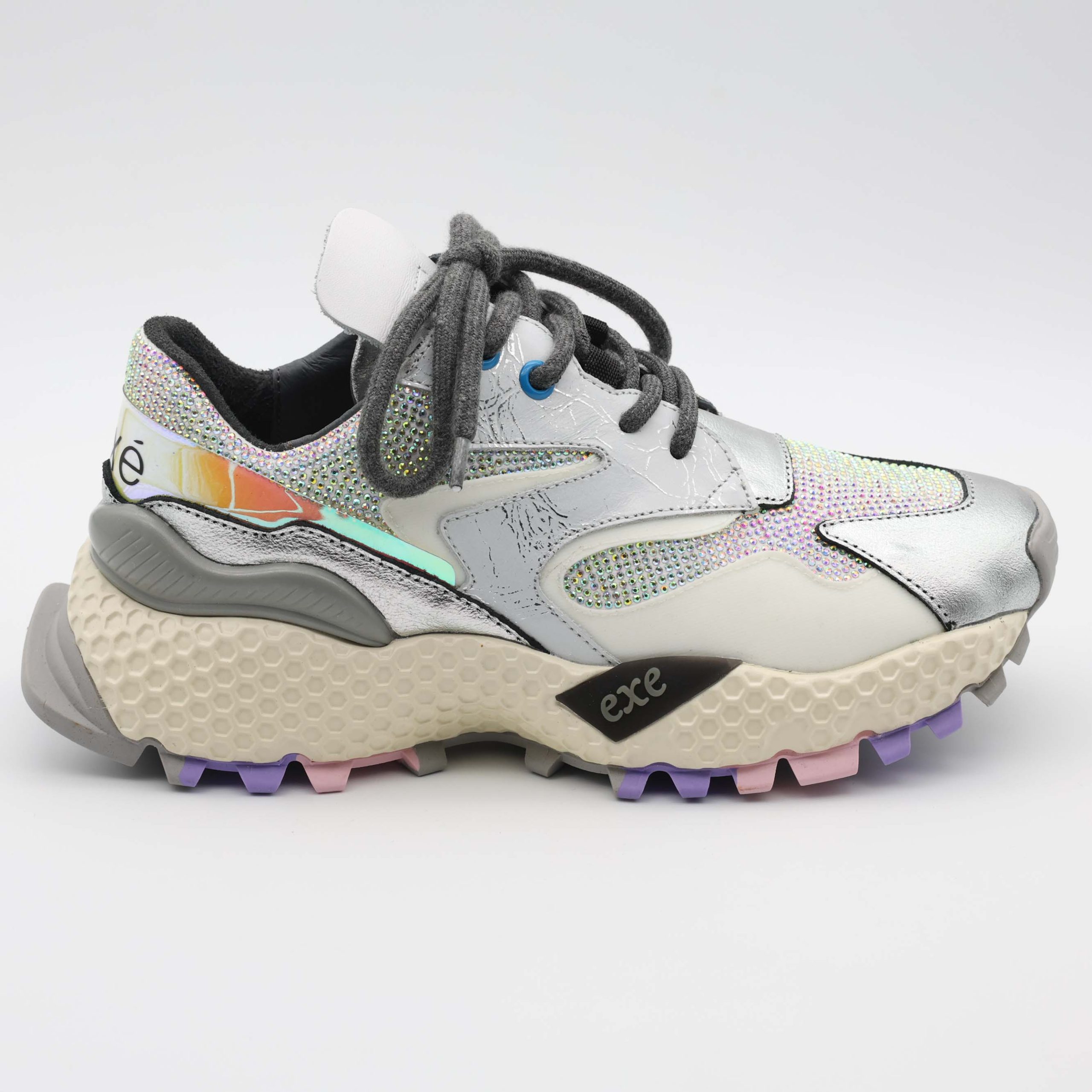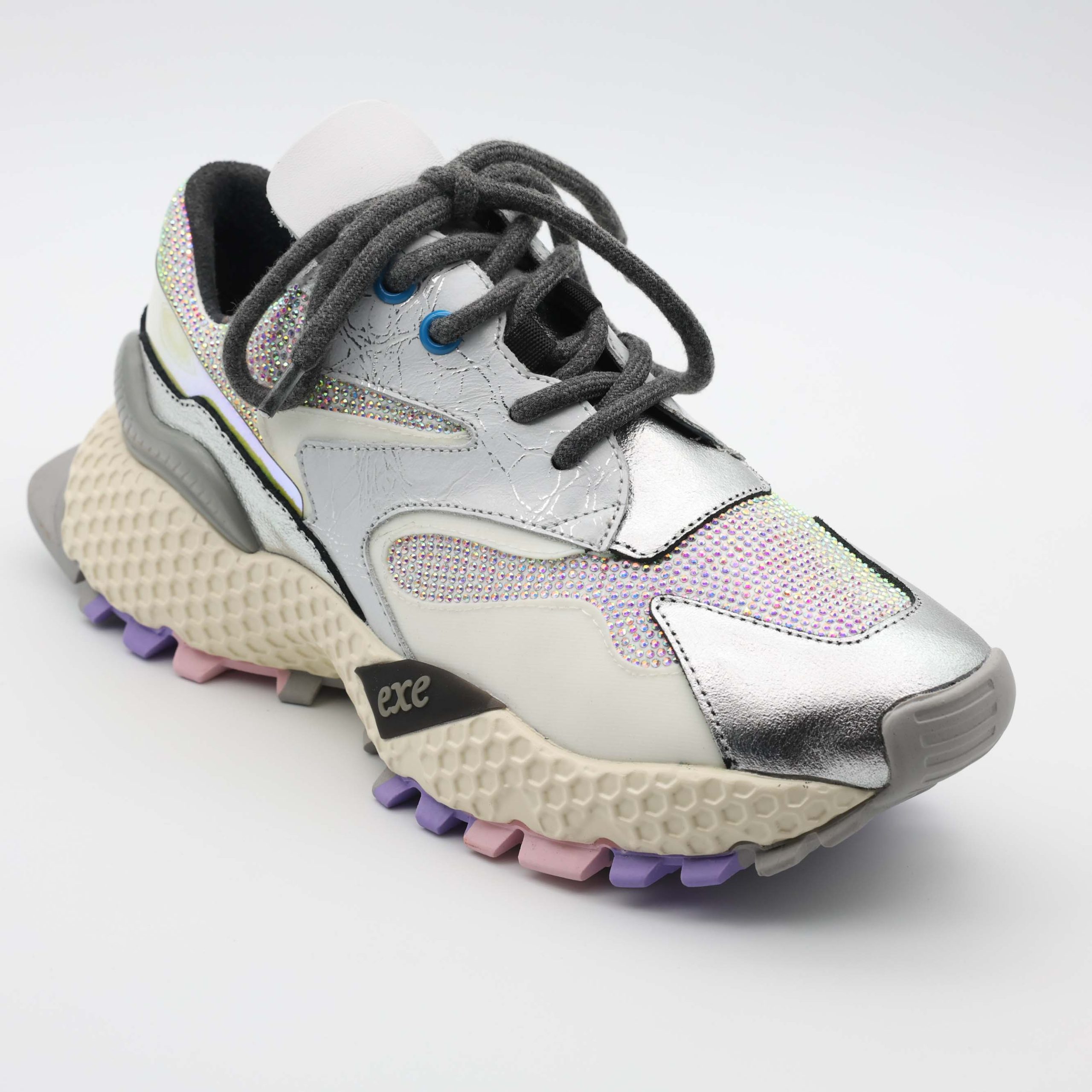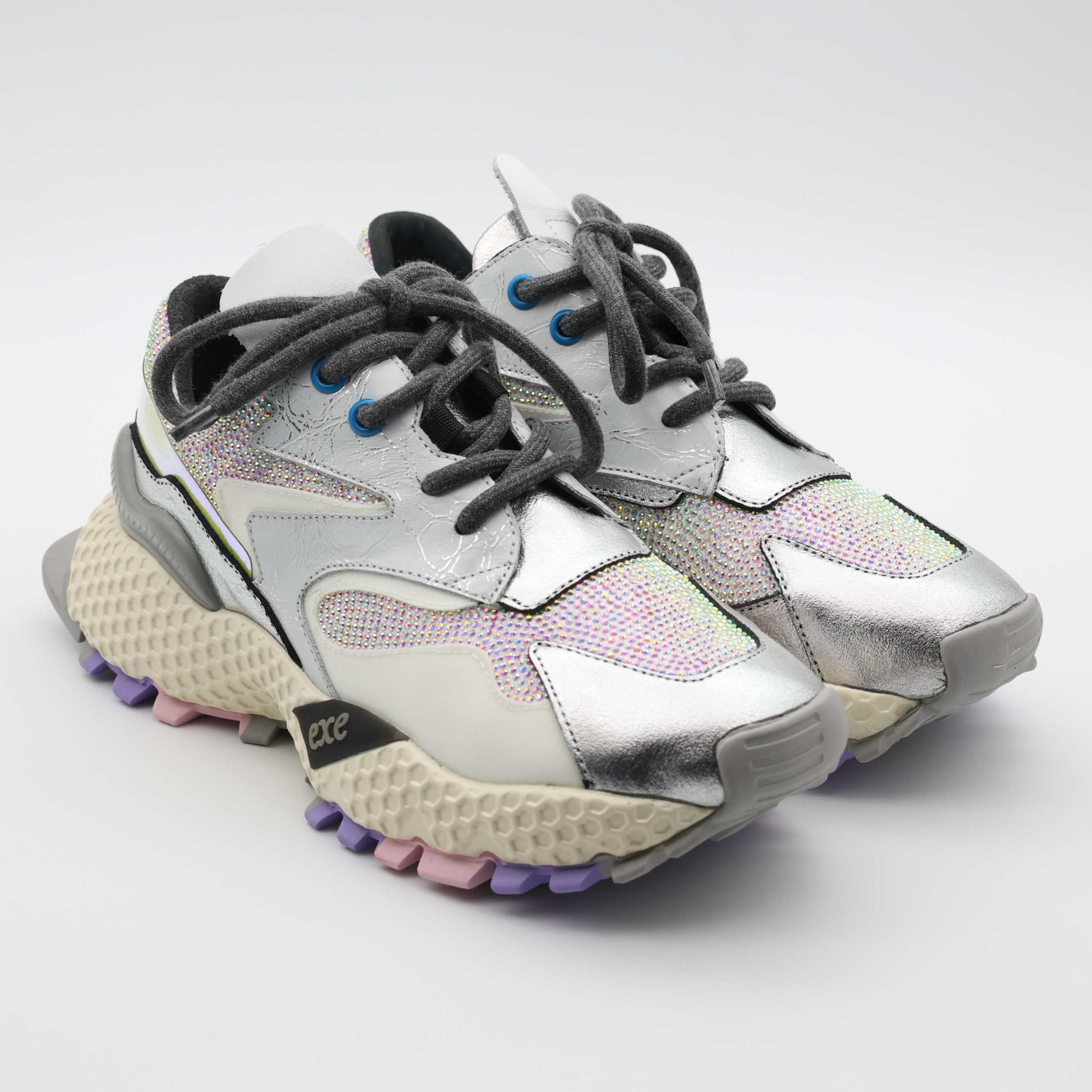 O modelo de ténis 3020-8A Silver/White da Exé combina a leveza do branco com o brilho elegante do prateado, resultando num visual atual e sofisticado. Um ténis versátil que ilumina os looks urbanos sem perder a sobriedade.