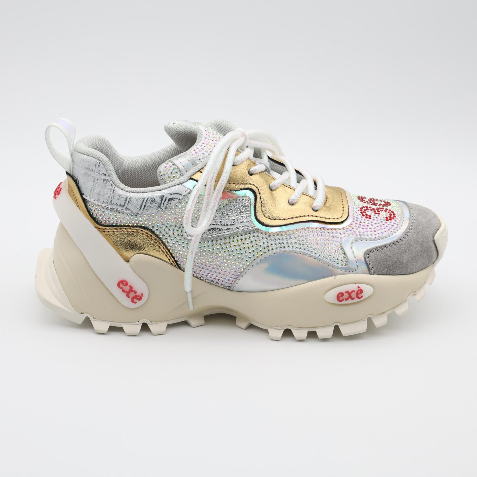 Os Ténis 4032-1A Silver/Gold da EXÉ são a escolha perfeita para quem gosta de destacar o look com personalidade.
