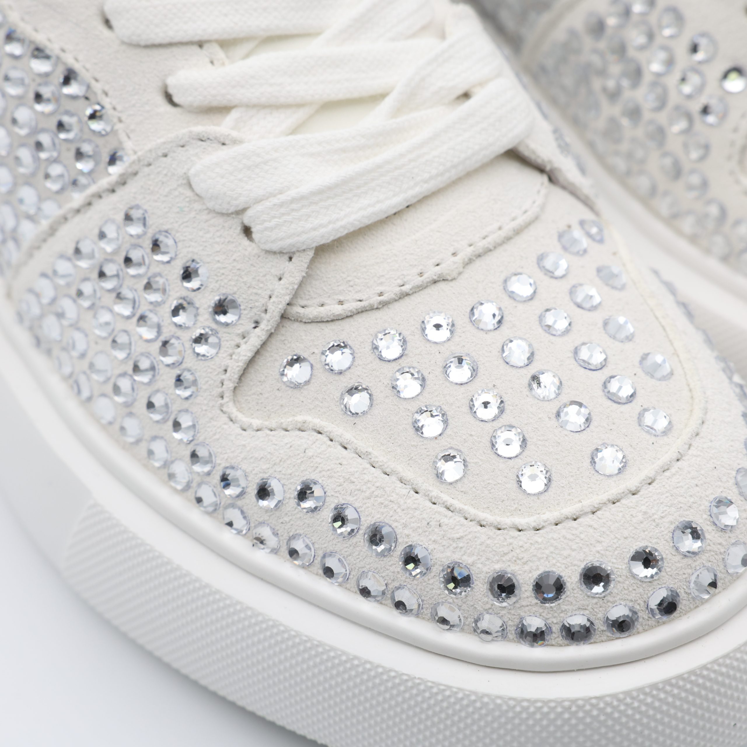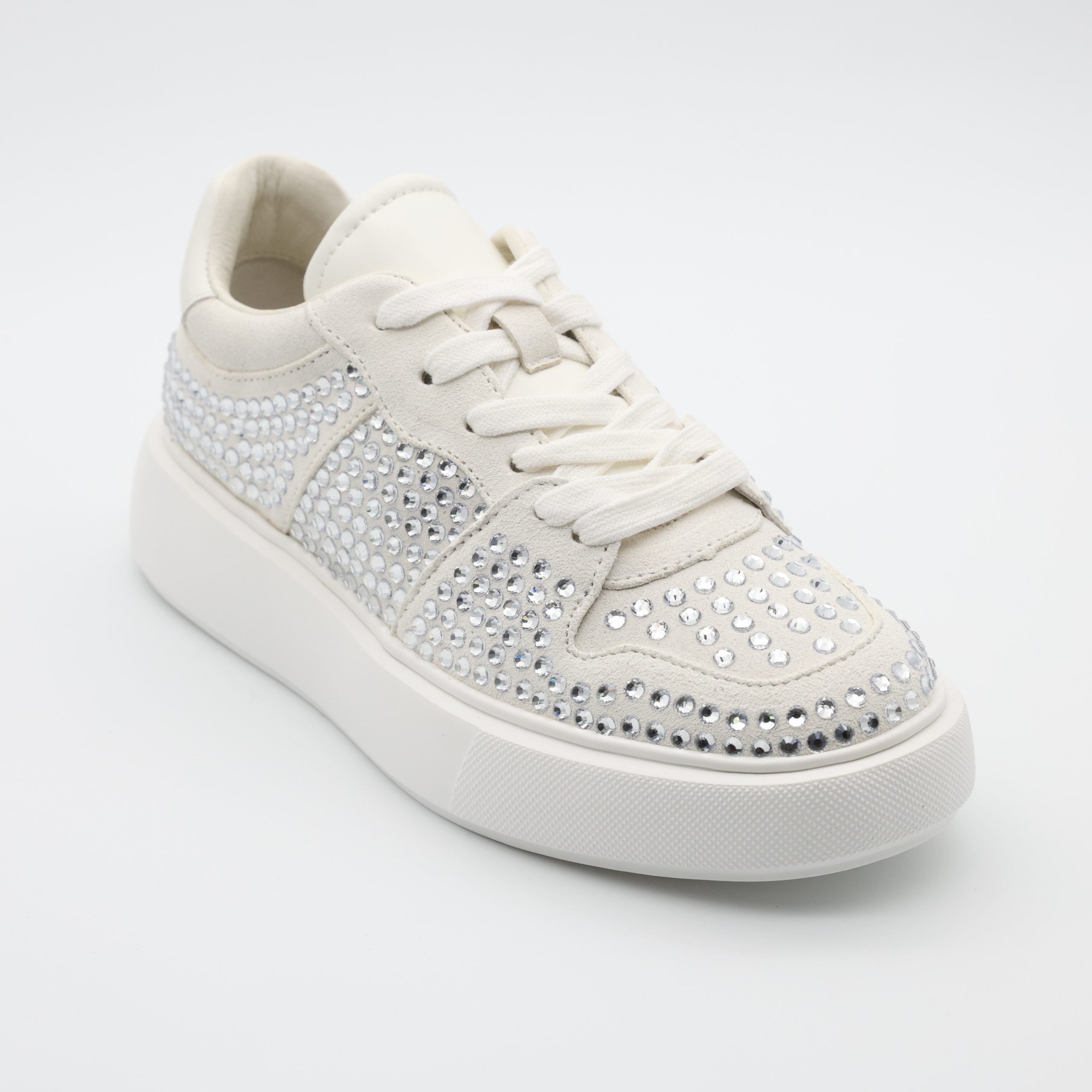 O modelo AMY-74 é um ténis sofisticado em camurça adornado com brilhos e detalhes metálicos, que conferem estilo e glamour discreto ao visual. A sola de borracha garante aderência e conforto no uso urbano diário.