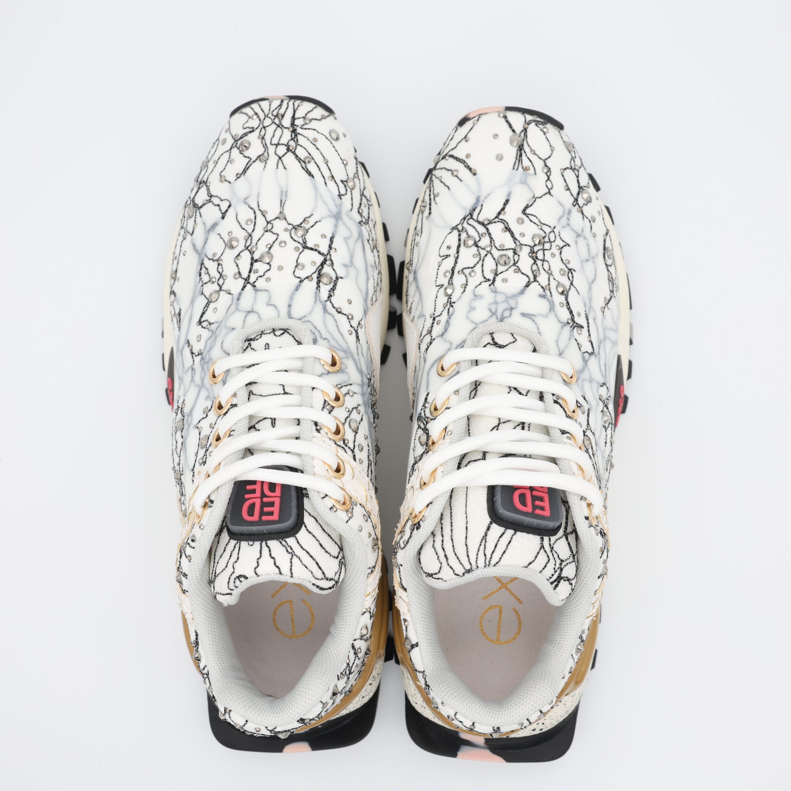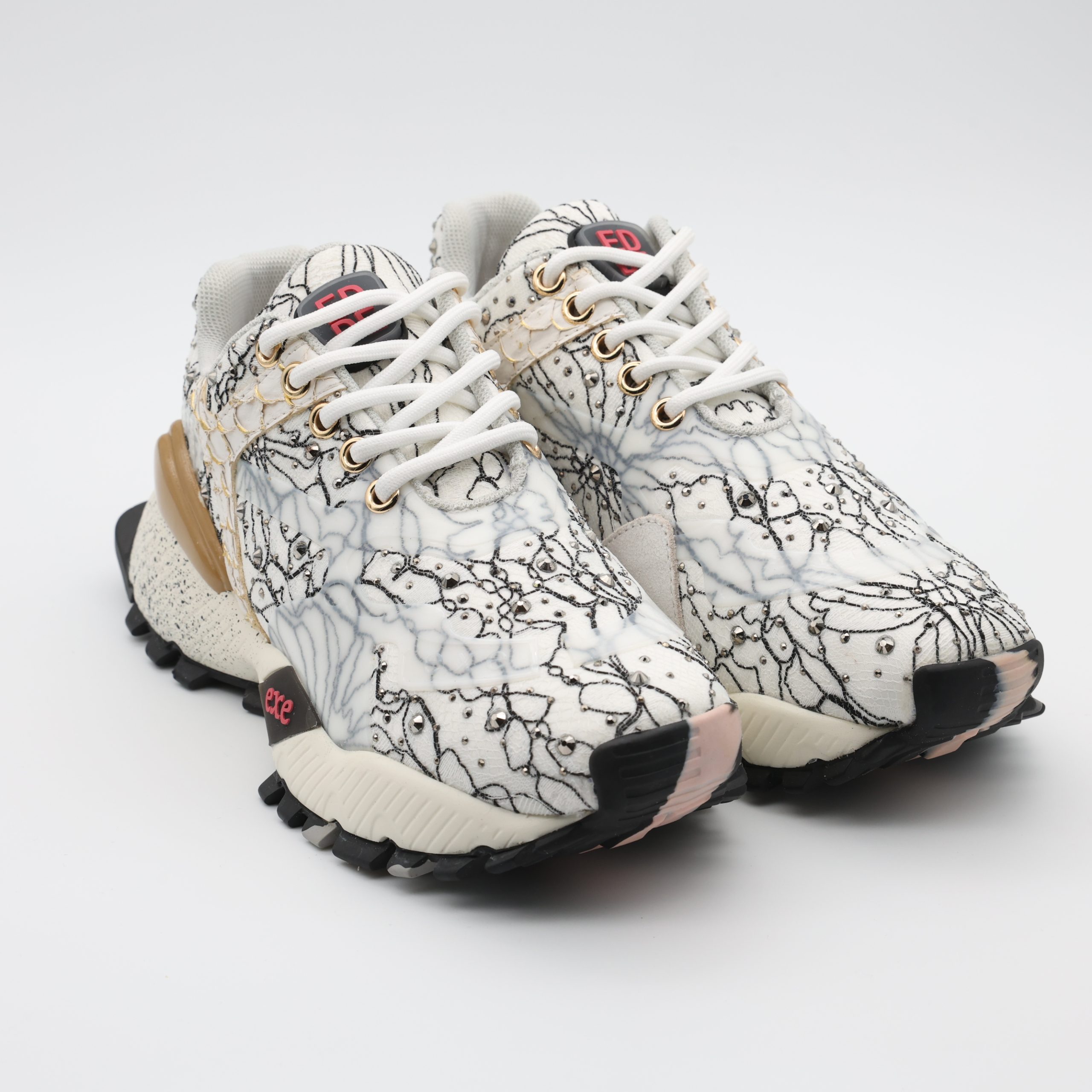 O EXÉ 134-102 é mais do que um ténis: é a fusão entre conforto e estilo. O design mistura couro e tecido marmorizado, enriquecido com detalhes brilhantes e um toque dourado no calcanhar, criando um visual moderno e sofisticado.