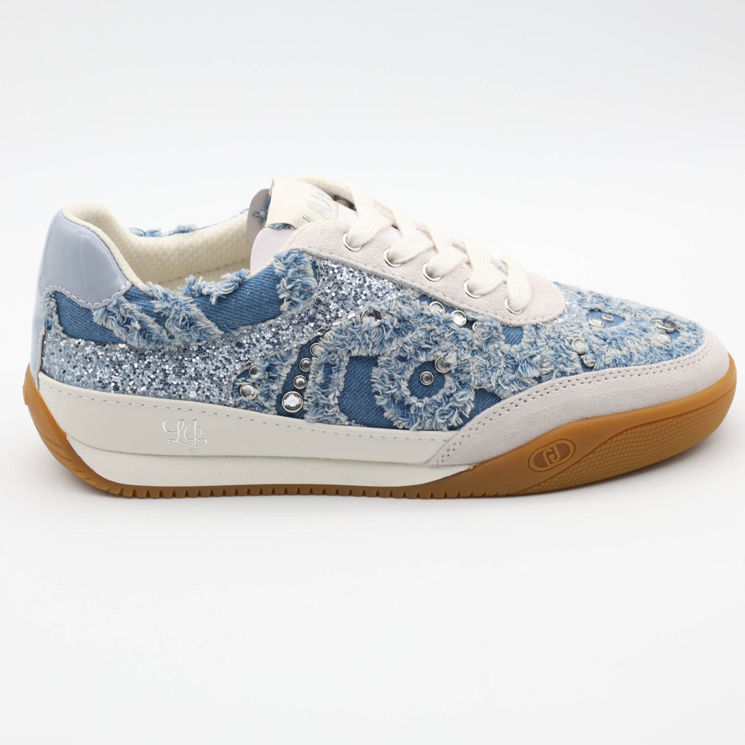 Os Ténis Lewis 04 Liu Jo são a escolha ideal para quem procura ténis femininos modernos, com inspiração urbana e um toque sofisticado. Com acabamento em efeito ganga (denim) e detalhes brilhantes, este modelo combina perfeitamente com looks casuais, jeans, vestidos ou coordenados desportivos-chic.