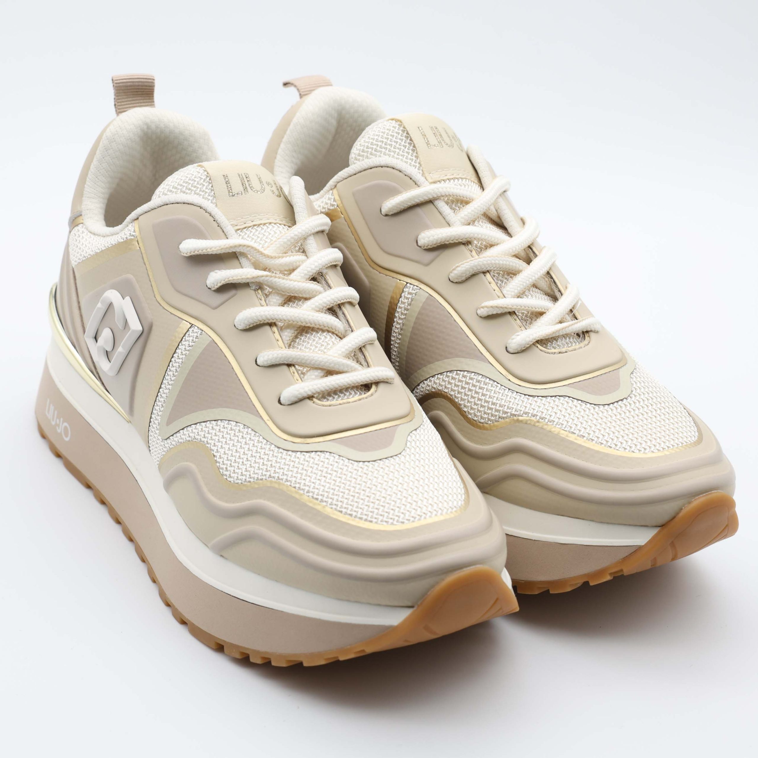 👟 Exterior: combinação de materiais sintéticos e tecido técnico com acabamento sofisticado da Liu Jo e atacadores para um ajuste seguro