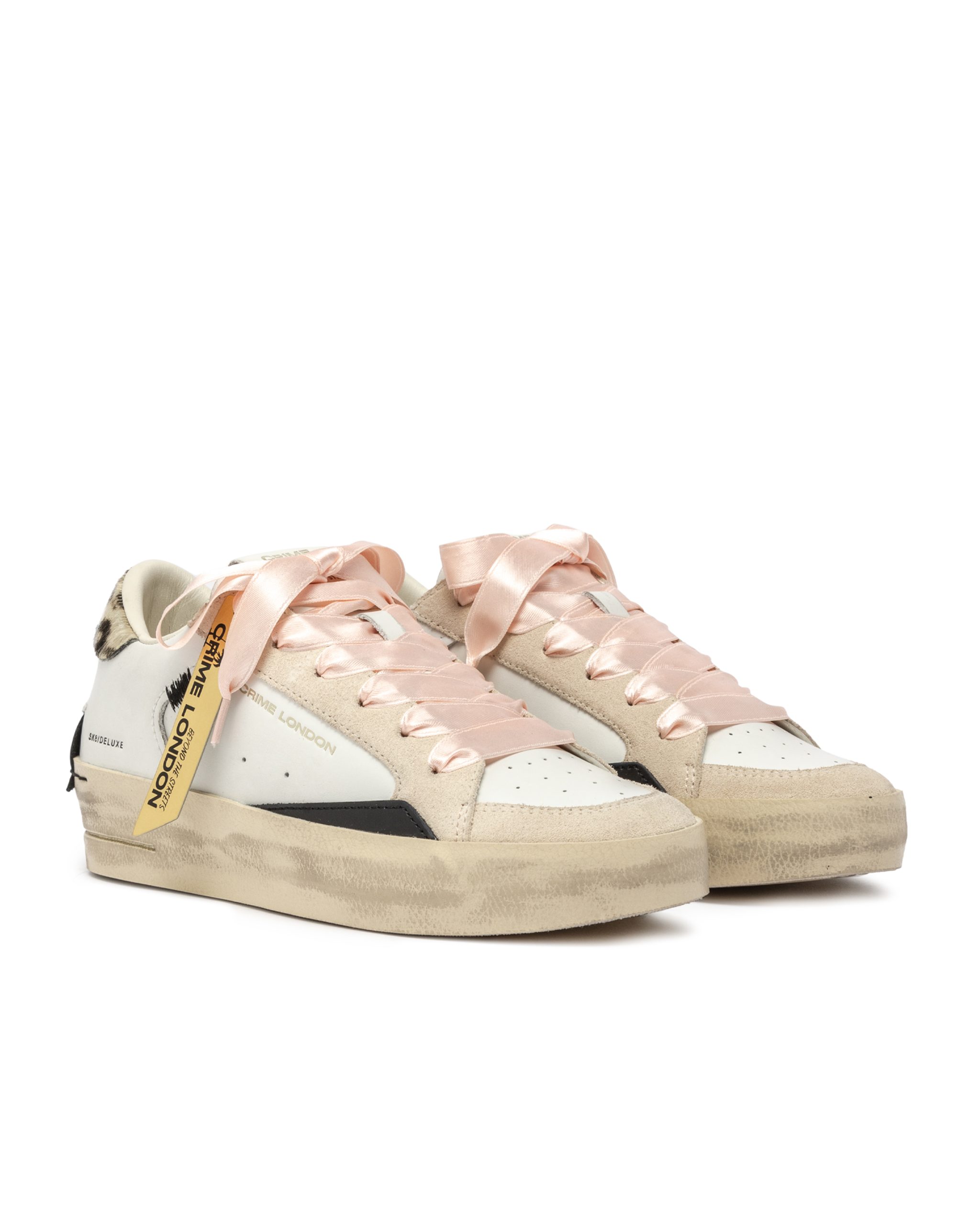 Os Ténis SK8 Deluxe Wedge da Crime London reinterpretam o clássico sneaker urbano com um toque de feminilidade e glamour descontraído.