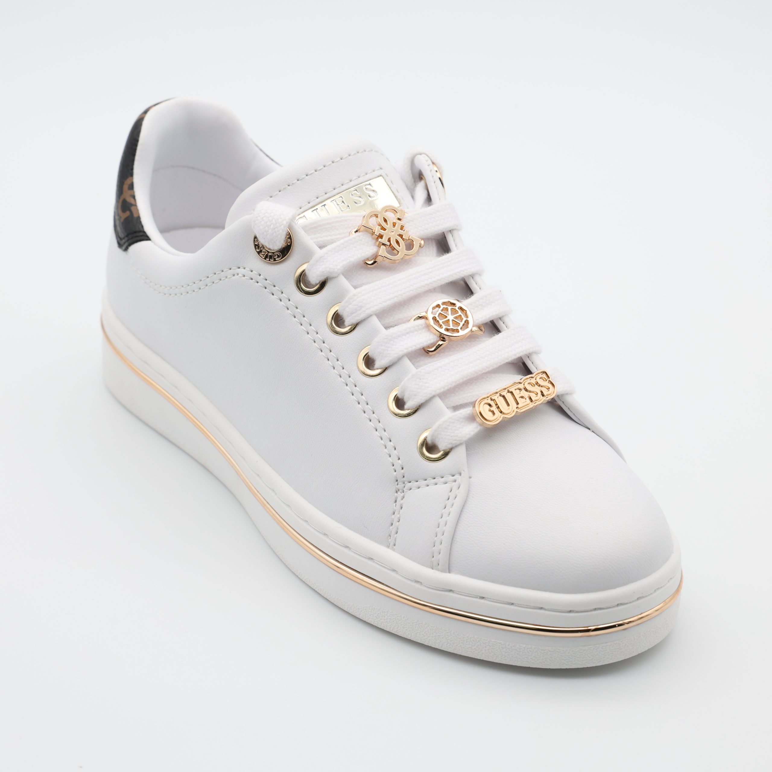 O Stasey é o sneaker perfeito para quem gosta de elegância descontraída. O design moderno em material sintético laminado ganha vida com o icónico padrão 4G da Guess e detalhes metálicos que iluminam o look. Um modelo versátil e sofisticado — ideal para combinar com jeans, vestidos ou coordenados urbanos.