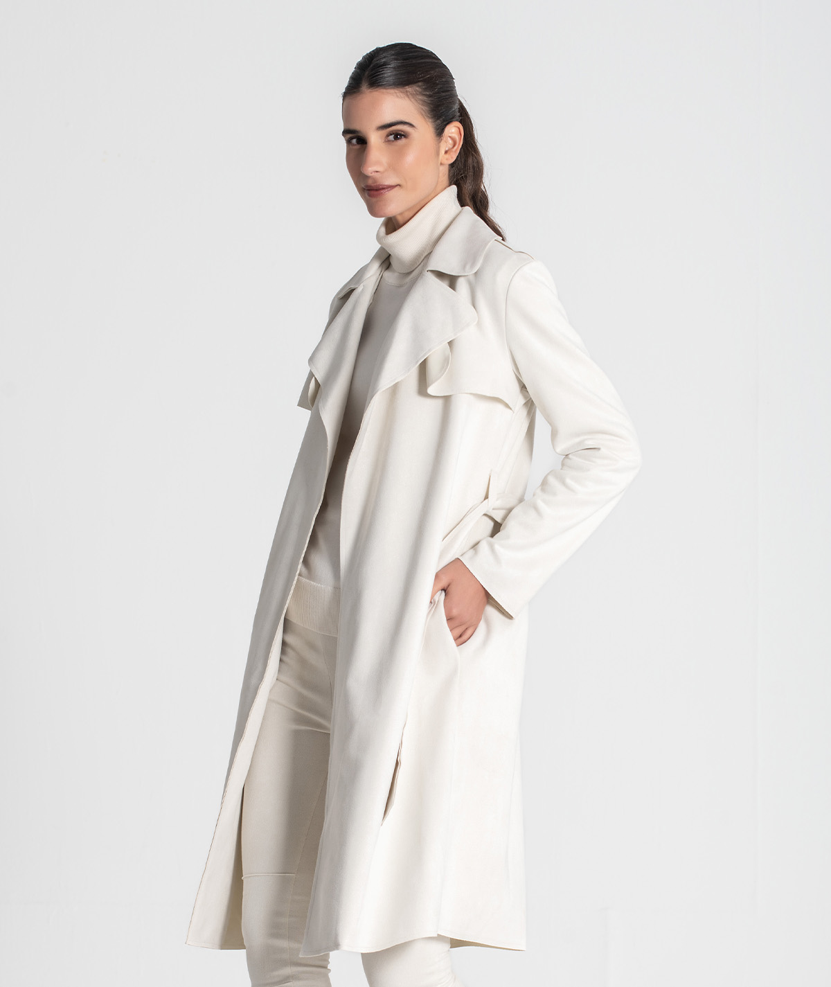 O Trend Coat Ruga é uma peça intemporal. Alia elegância e conforto com naturalidade. O seu design estruturado e o cinto ajustável realçam a silhueta e dão-lhe versatilidade: pode usá-lo aberto, para um visual descontraído, ou fechado, para um estilo mais clássico. Ideal para dias frescos, este casaco acrescenta sofisticação a qualquer conjunto, sem esforço.